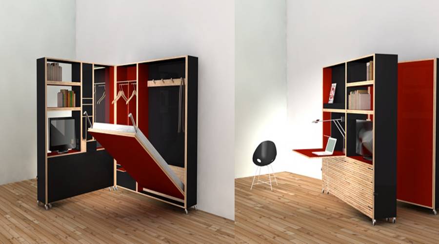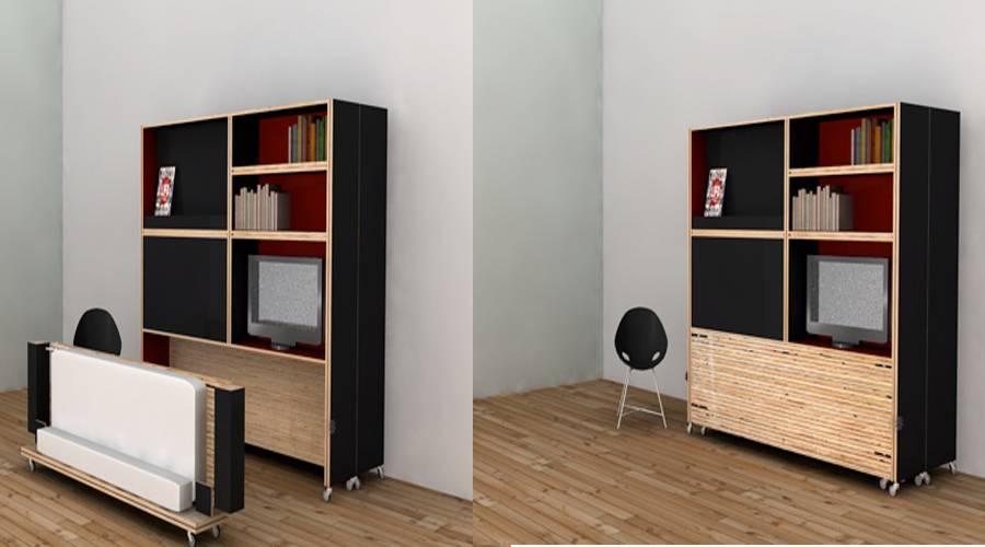 Kizis’ modern aesthetic offers the ability to easily change up a studio apartment into a living room, workspace and bedroom, and all can be folded away if you so choose.