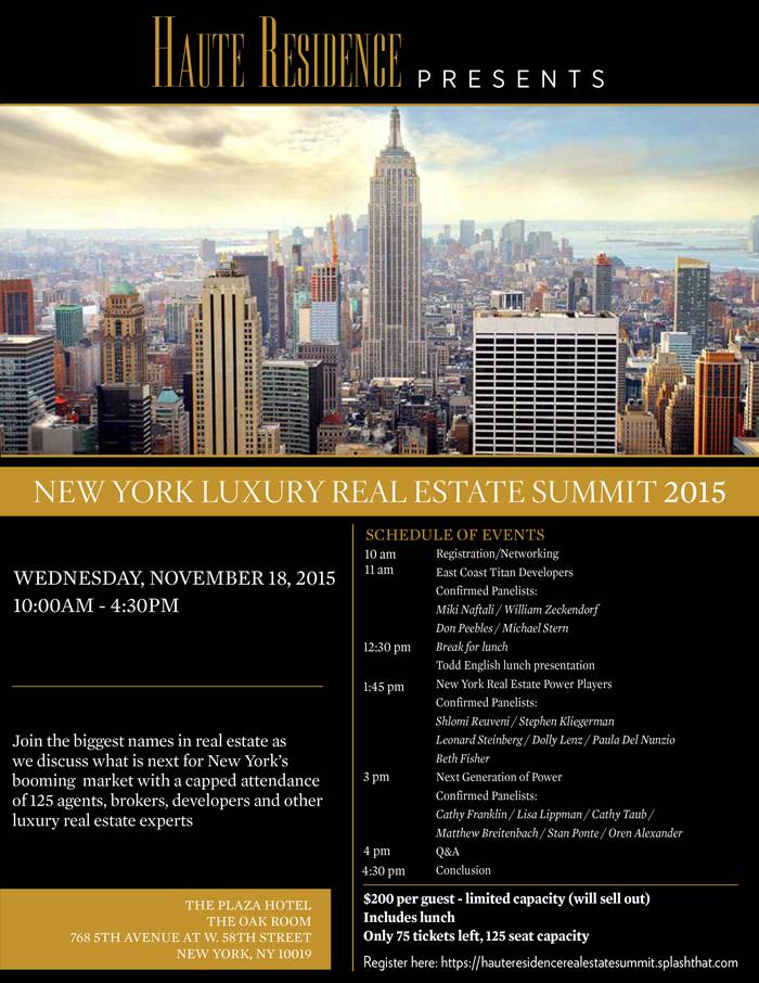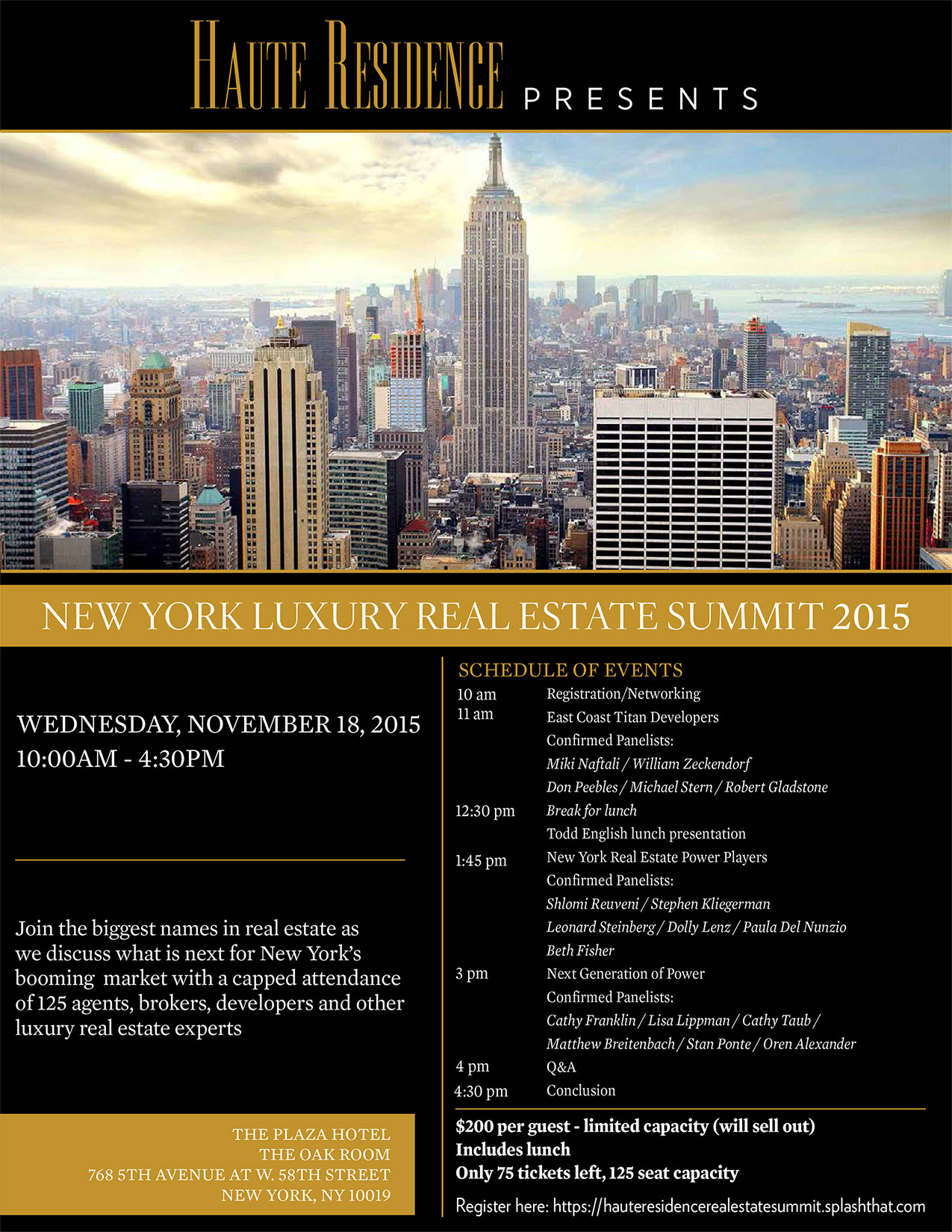 Click here to purchase tickets to the New York Luxury Real Estate Summit 2015.
