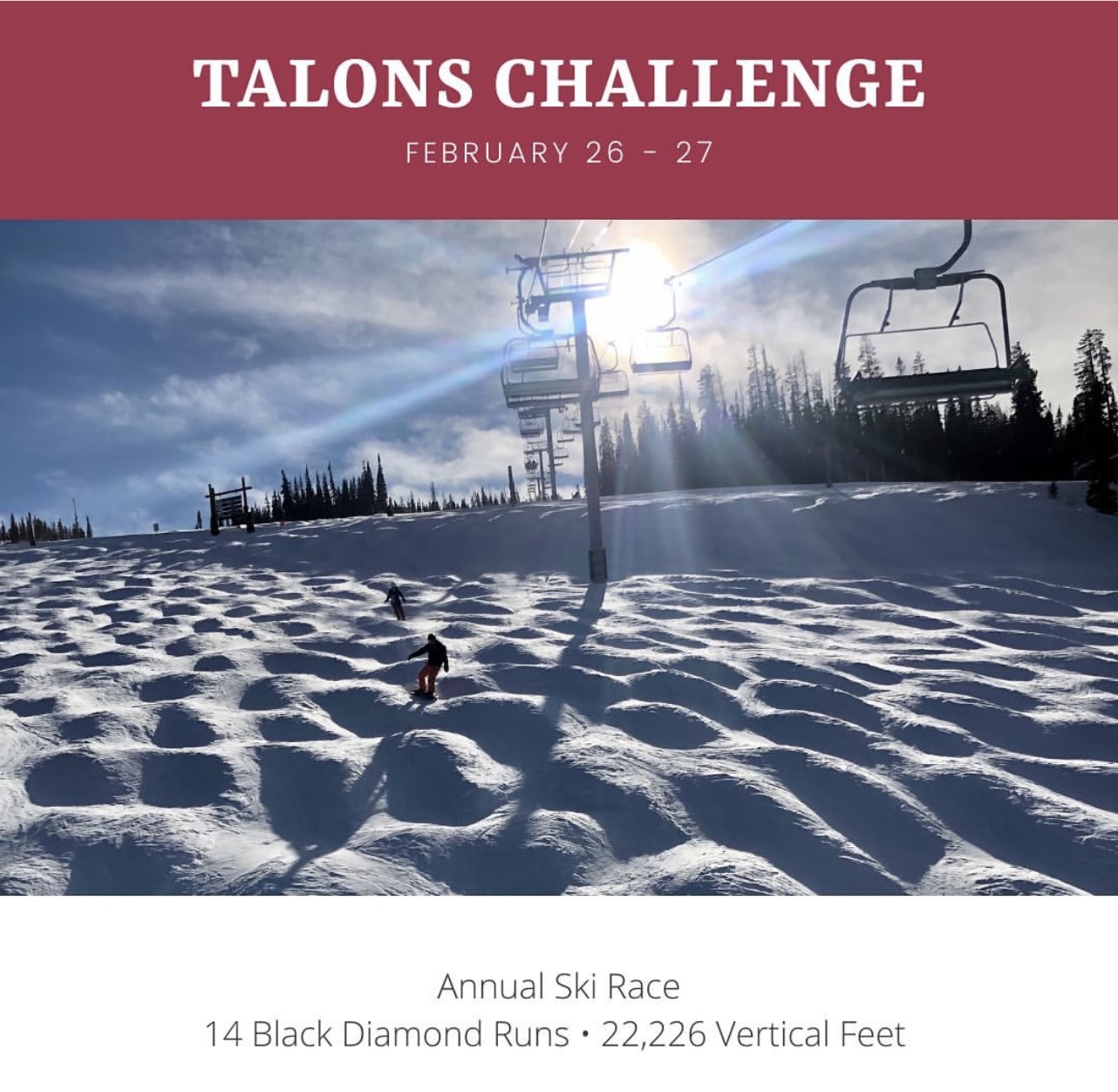 ? Talons Challenge – Can you ski 14 black & double black Diamond runs totaling 22,226 vertical feet in one day? Yes, you can!