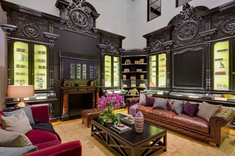 The opulent estate touts a 24-hour guard gated entryway, which opens to a central motor court showcasing a lighted fountain, while its double-height foyer leads to the formal living room and dining room, which connect to a library embellished with ebonized wood. Spectacular French doors pave the way to the home’s numerous terraces and patios.