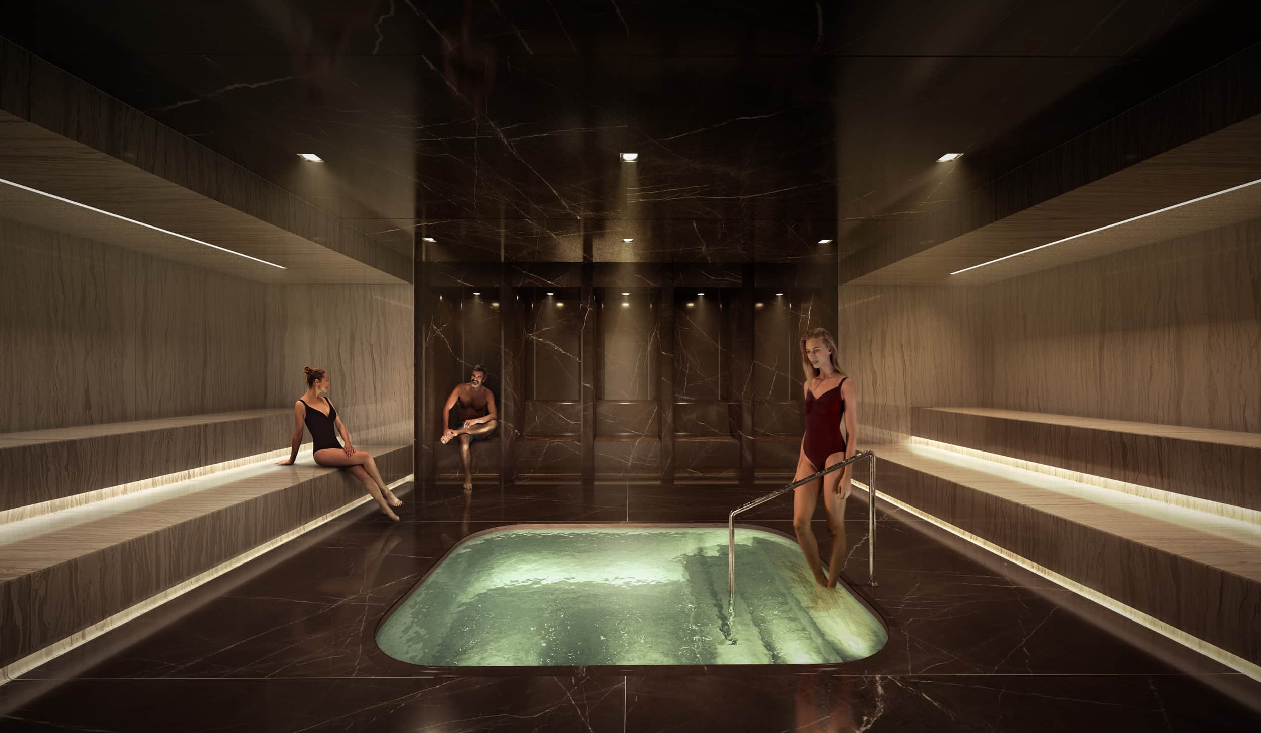 For relaxation, residents can unwind in a spa that rivals that of the world’s top 5-star hotels. Features include a sunken tranquility garden, Hamam with cold plunge pool, private treatment rooms and a hot tub and sauna.