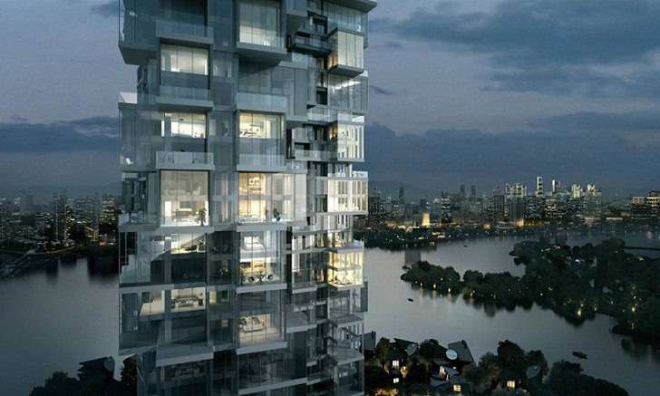 Hollywood-based design firm 5+ Design created the Krystal Laputa, a series of residential high-rises that are meant to encourage interaction between residents and the outdoors.