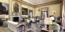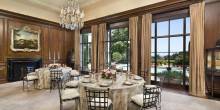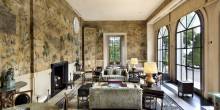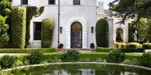 The five-bedroom, seven full-bath, two half-bath, Mediterranean-style home was built in 1912 by acclaimed architects Bliss & Faville. The grand mansion includes a ballroom, a flower arranging room, and a servants’ wing with additional bedrooms. Several rooms feature Anthony Hail’s interior designs from the 1960s. Outside, famed landscape architect Thomas Church designed the pool and surrounding grounds to showcase the areas stunning views.