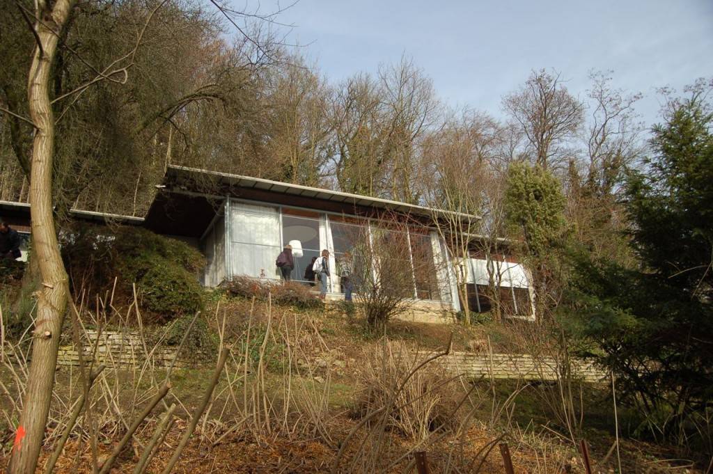 The long, skinny, single story home was made predominately from prefabricated compenents from Prouvé’s factory, which he had just lost control of in 1952. With the help of his children, the home was completed in 1954.