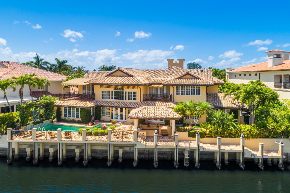 Splendid villa nestled among the waterfront of Boca Raton’s exclusive The Sanctuary. Ideally situated on the Intracoastal Waterway this beautiful home underwent a complete ground up renovation that includes impact glass windows and doors offering hurricane protection whole house generator and new concrete dock all completed in 2014. 5 bedrooms 5.5 bathrooms plus staff quarters and has nearly 7,300 SF of living space. Large formal living areas and smaller intimate spaces alike feature beautifully detailed ceilings flooring lighting and wall treatments. The gourmet kitchen has every amenity including elegant cabinetry and a large island to the highest quality appliances. A theater room office conservatory and bar area with wine storage are among the homes many additional offerings. Terraces overlook the resort style pool.