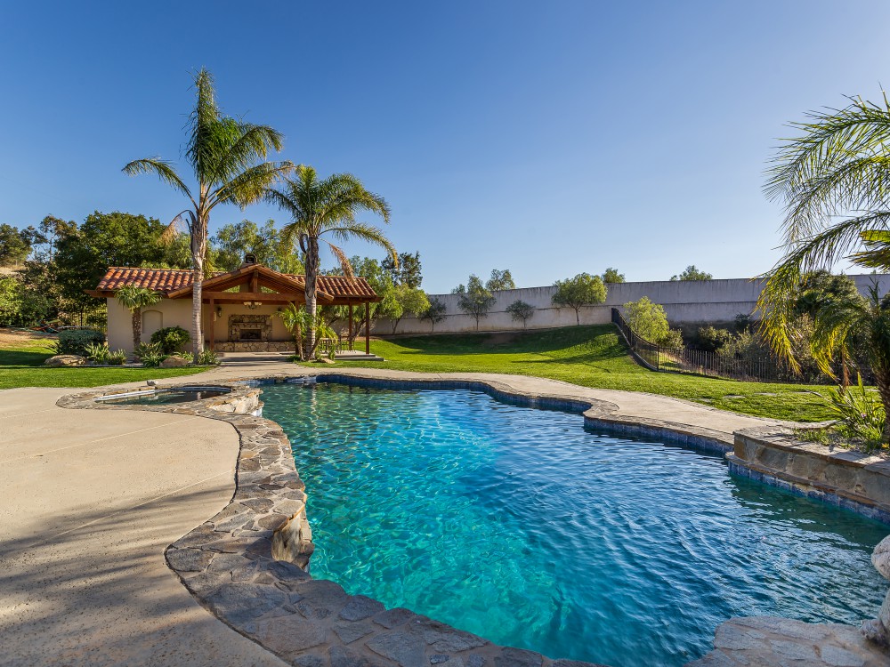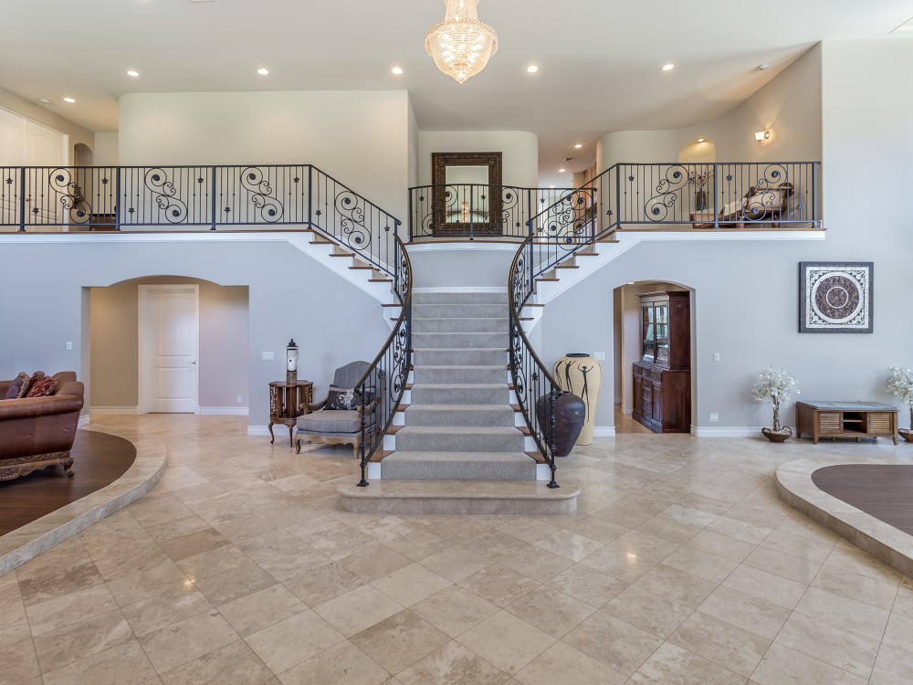 Impressive Mediterranean Estate located in the prestigious 24-hour guard gated neighborhood of Indian Springs Estates. Custom home with 6 bedrooms and 8 1/2 bathrooms. Almost 9,100 sq. ft with on an over 2 acre lot. Expansive floor plan impresses from the moment you walk through the grand double door entry into the foyer that opens into the 2-story living and dining areas. Imperial staircase leading to the upper floor. The large kitchen features granite counters, stainless Viking double oven, 4-burner cooktop with grill and warming drawer. Double dishwashers and side by side Sub-Zero Refrigerator/Freezer. An oversized walk-in pantry and separate butler’s pantry allow for maximum storage. The kitchen opens to the sunny breakfast room and Family Room with bar and fireplace. The main level of the home also includes an office alcove, guest suite and Billiard room. Travertine and hardwood floors can be found on the main level as well as beautiful ceiling detail, recessed lighting and an elegant neutral decor.