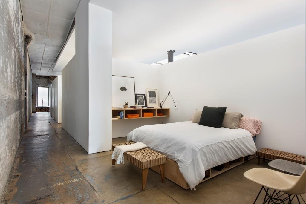 Despite its harsh industrial hulk, the home is filled with soft, steady diffused light that pours in from windows across the Southern and Northern walls and from the 15×15 foot skylight in the center of the loft. The clean design, augmented by 13-foot ceilings, creates a sense of airiness.