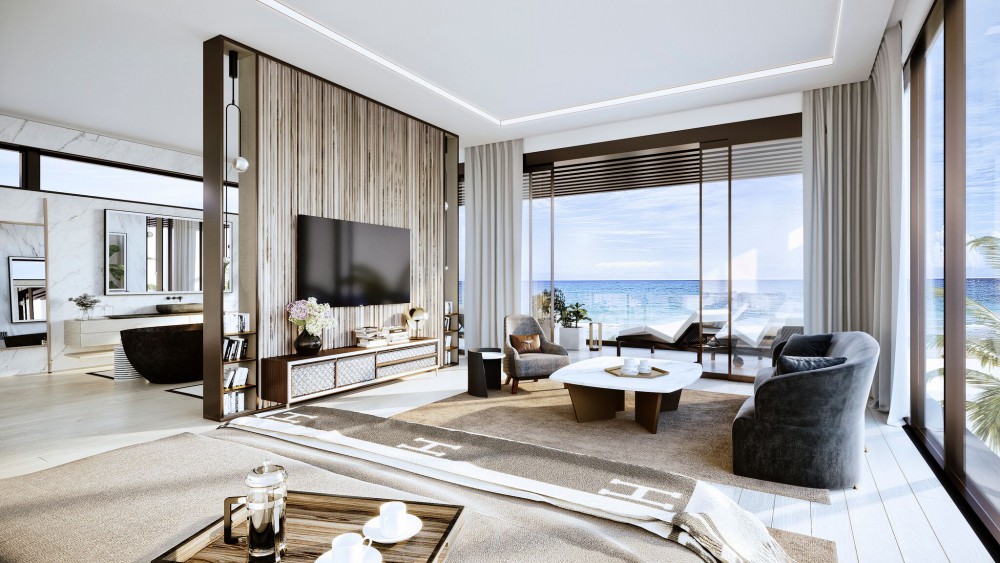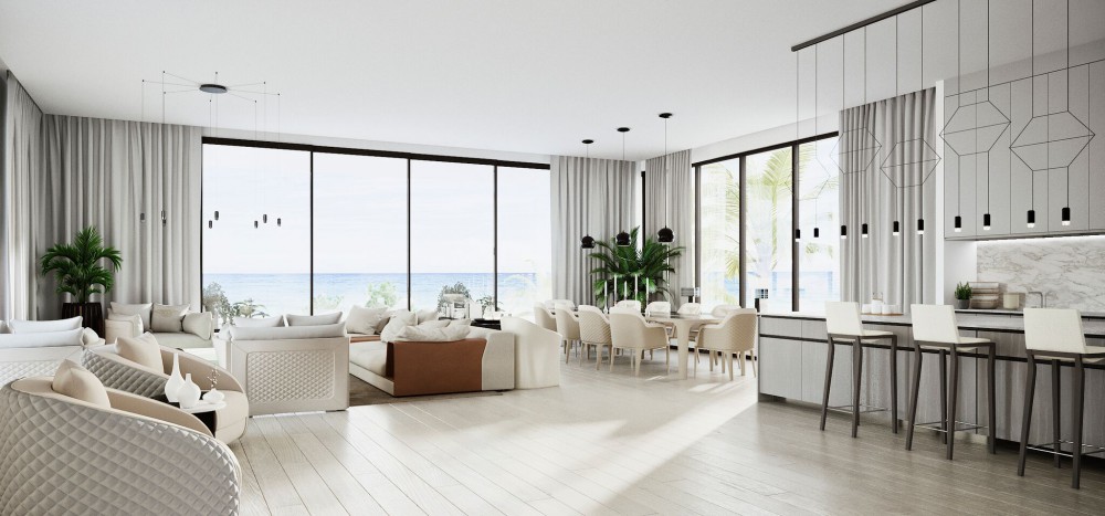 Situated in the heart of one of Florida’s most exclusive zip codes, Maison Golden is a unique oceanfront three-story home with its own private beach. The sprawling home offers jaw-dropping interiors transcoding a feeling of lightness with the illusion of floating on the water. Designed to seamlessly blend indoor and outdoor living, Maison Golden offers the juxtaposition of a minimalistic design approach with the infusion of rich materials for the ultimate ultra-luxurious living. The home features a wine cellar, home theater, pool cabanas, roof deck with pool, a spa and a fully equipped private suite with private entrance.