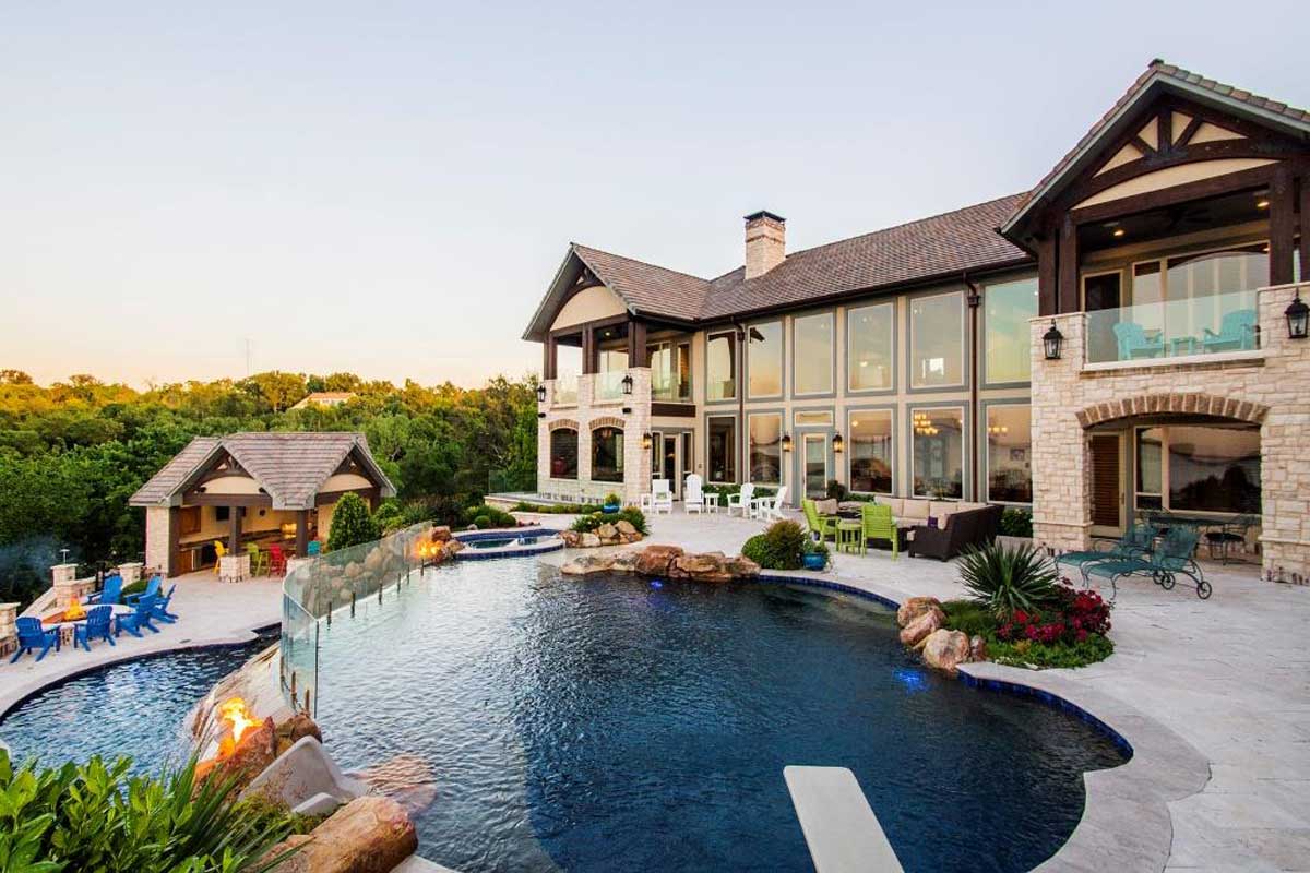 This jaw-dropping Dallas estate features unparalleled lake views from almost every room, a professional-grade indoor and outdoor kitchen, a helipad, pier and a boathouse, this lakeside property is designed to maximize entertaining, indoor-outdoor living and sunset views.