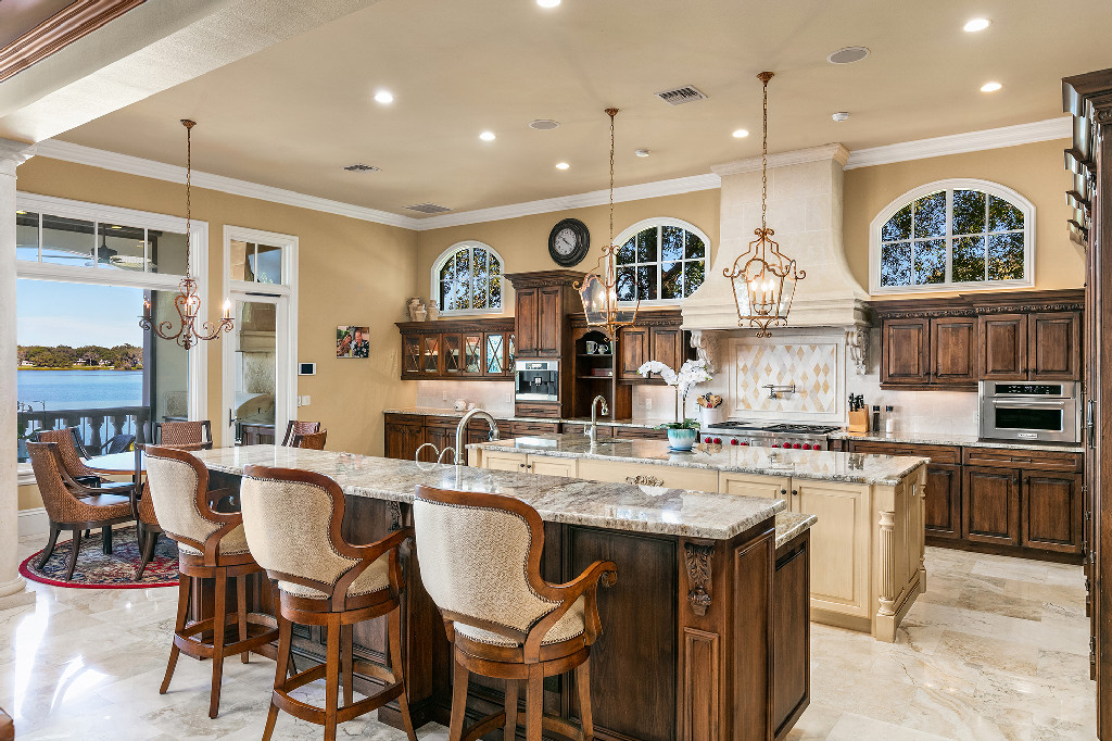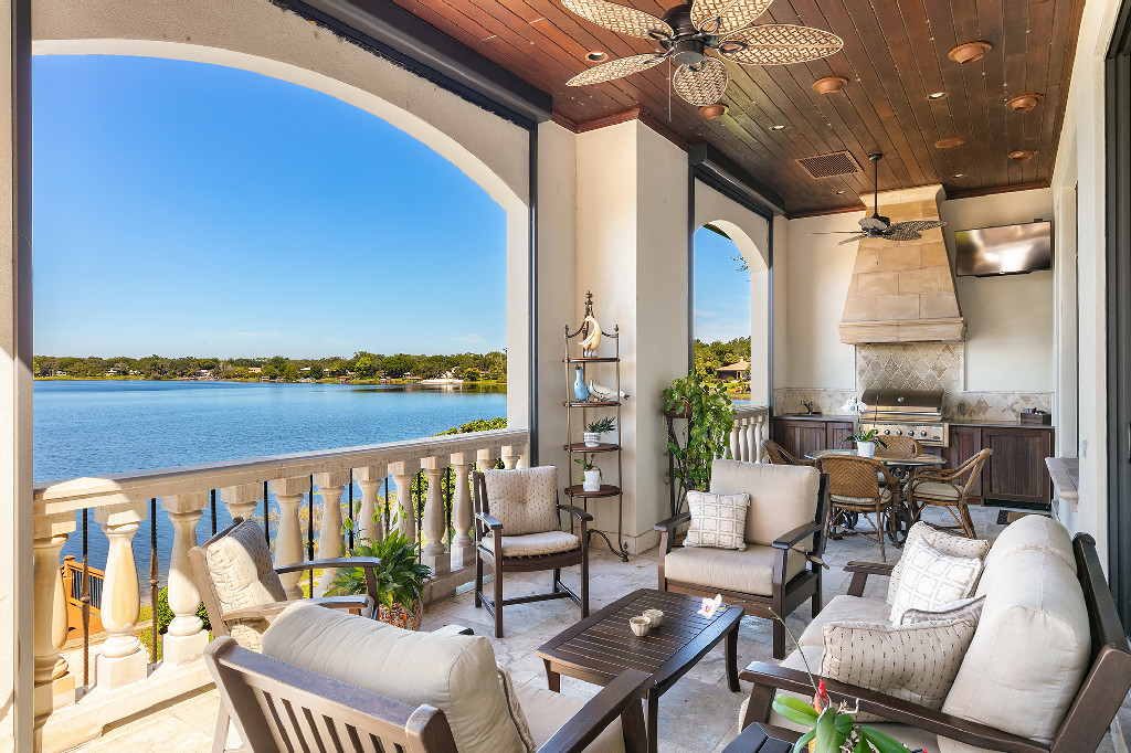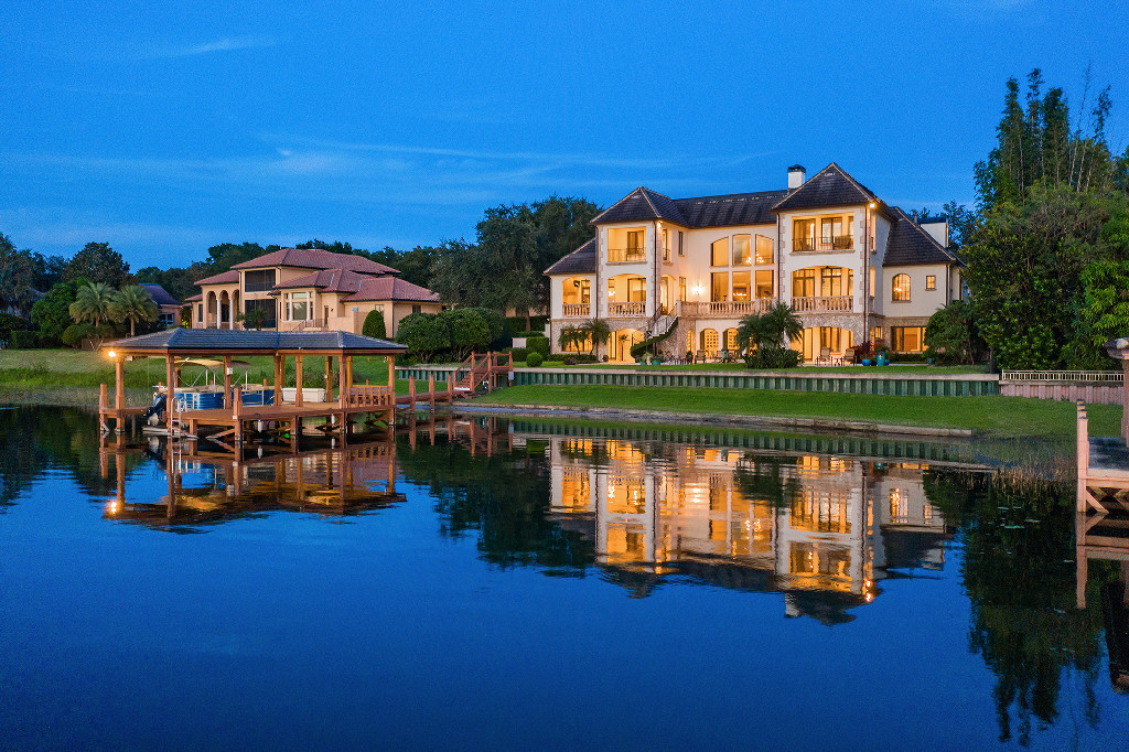 Gracious lakefront living at its finest, this exquisite French chateau offers a prime location along the shores of Lake Bessie within the renowned Isleworth Golf & Country Club in Central Florida. Elegantly situated with a backdrop of water views, the expansive estate spans more than 12,300 square feet of living space across three levels, with a generous amount of new upgrades and finishes throughout. The impeccable grounds take full advantage of the lakefront setting with an open-air pool and spa; ample deck space for lounging in the sun; a screened, covered terrace with summer kitchen; and a dedicated boat dock.