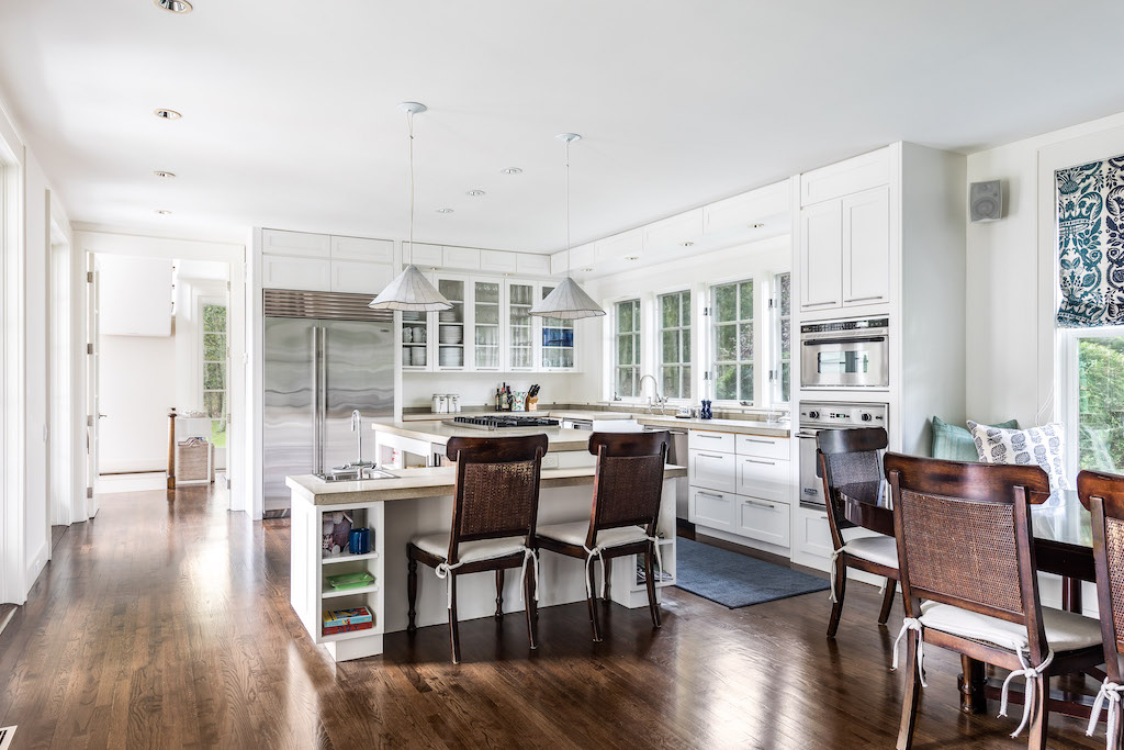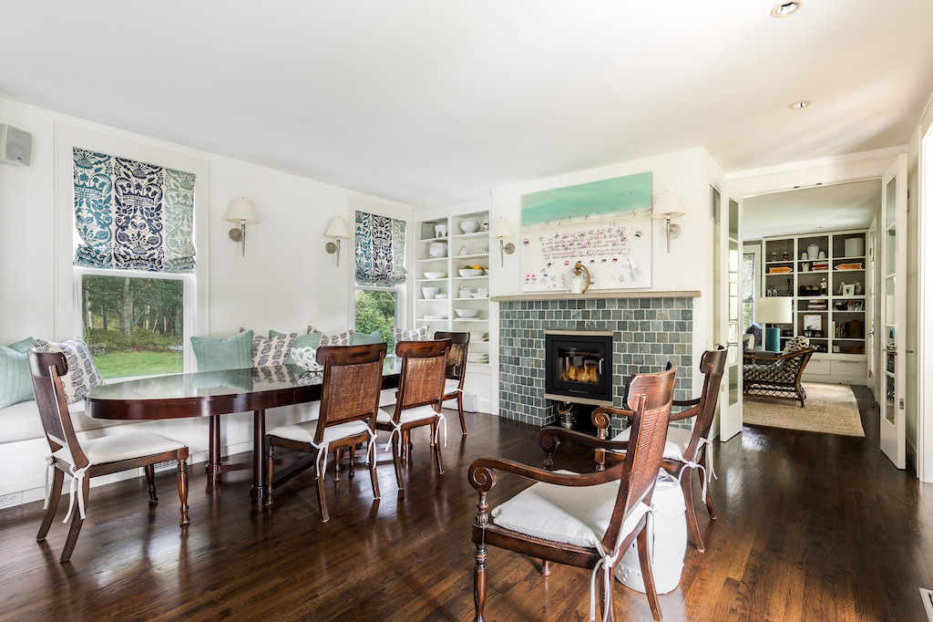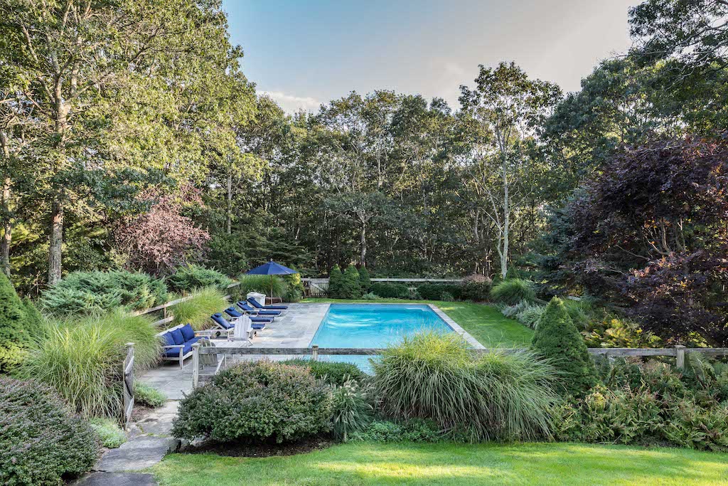 Bask in total tranquility and effortless indoor/outdoor living in this four-bedroom, four-and-a-half- bathroom traditional Sag Harbor home. Designed by Frederick Stelle of Stelle Lomont Rouhani Architects, this well-maintained home was completely renovated and expanded in 2001 to create a residence filled with light and a beautiful flow for entertaining. The L-shaped abode highlights the magnificent park-like grounds with six sets of French doors that open to the lush outdoors. A stunning bluestone patio overlooks expansive lawns, and the gunite pool is surrounded by towering mature trees, making al fresco dining and lounging irresistible. Inside, tall ceilings, wide-plank hardwood floors, and wide art walls run throughout 3,000 square feet of living space. On the lower level, enjoy a corner large living/family room and a spacious library/den featuring a warm fireplace, built-ins, and window seats. Chefs will love the open kitchen where custom cabinetry, poured bi-level concrete countertops and a farm sink surrounded premium appliances, including a Sub-Zero French door refrigerator, a Viking range and cooktop, and two Bosch dishwashers. The adjacent dining room features another fireplace, and a gorgeous powder room and laundry room round out the bright and airy lower level. Ascend the custom open staircase with handcrafted railings to find the breathtaking master suite trimmed in handsome millwork and designer wallcoverings. The en suite bathroom dazzles with chic tile, a frameless glass shower, and double vessel sink vanity. Three more bedroom suites with well-appointed private baths ensure plenty of room for family and friends, and a convenient office completes the upper floor. The home’s lower level, meanwhile, provides a large open rec space ideal as a game room, playroom, home gym or whatever your needs require. Every detail has been addressed in this immaculate residence. Surround sound runs throughout, and a smart French drain ensures that water runs away from the structure. The magnificent 4.6-acre lot offers plenty of room for a tennis court and is bordered by more than 100 acres of reserve forest land. Located at the end of a long drive leading to only two other homes, this exceptional, secluded home feels worlds away but is located less than 2 miles from Sag Harbor Village and Havens Beach.