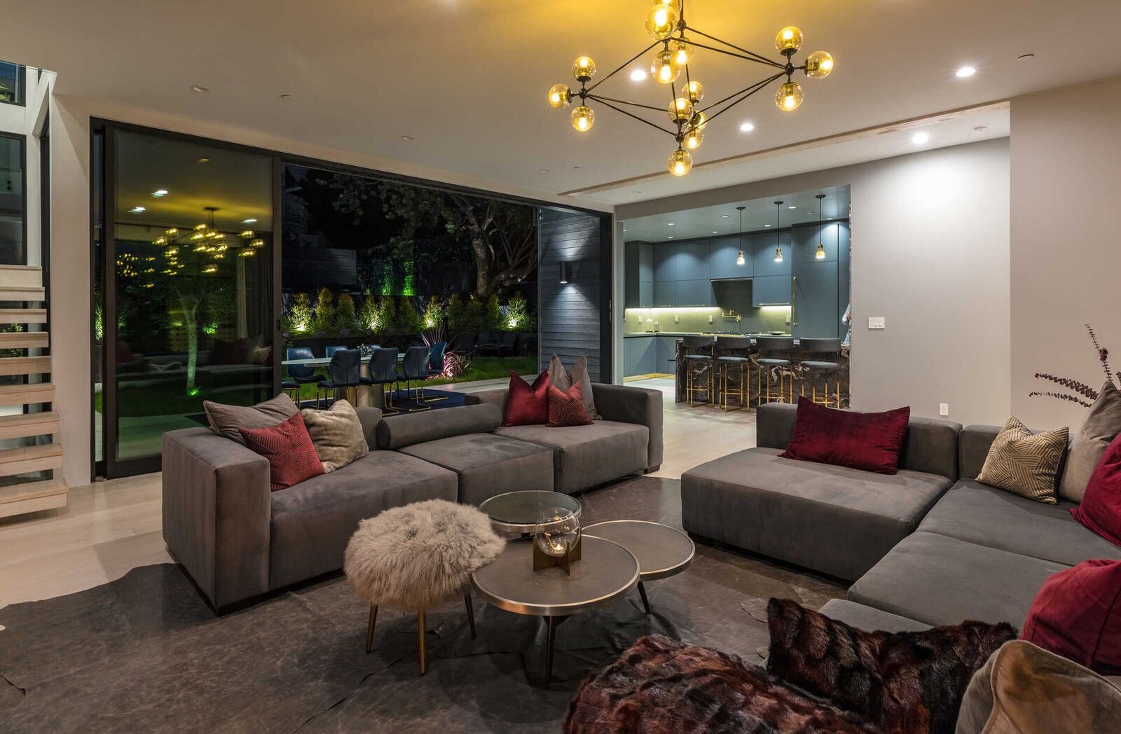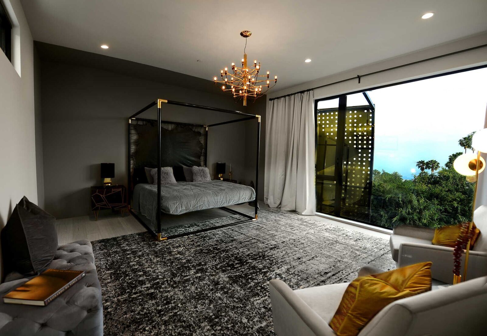 The brand-new, four-bedroom, three-bathroom residence, sited on a 9,700-square-foot lot, is equipped with smart home technology throughout
