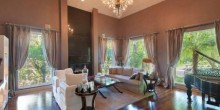 The home boasts a screening room, tennis court, gorgeous pool, well-kept patio and generous square footage.