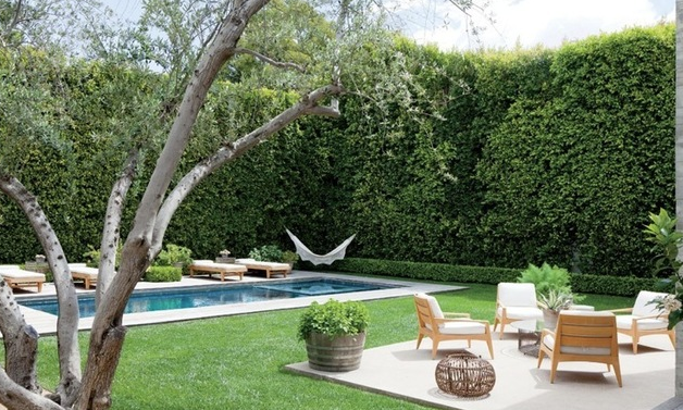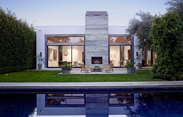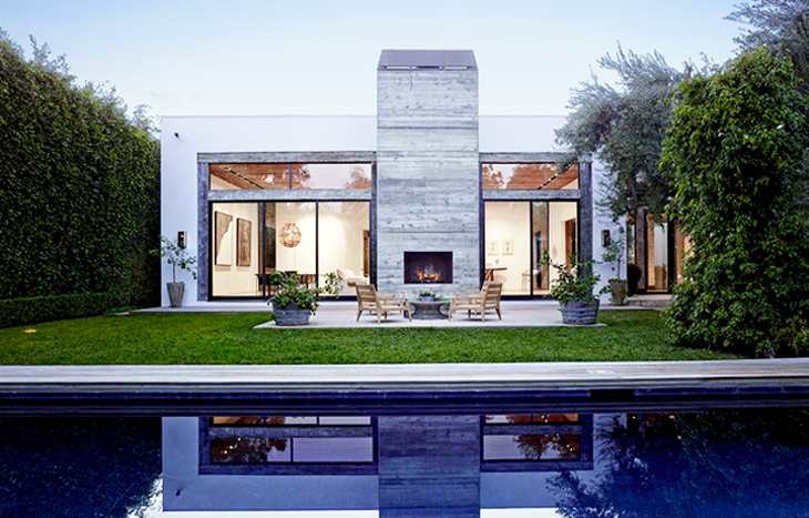 Two solar heated pools also rest on the grounds out back, surrounded by tall hedges for extra privacy.
