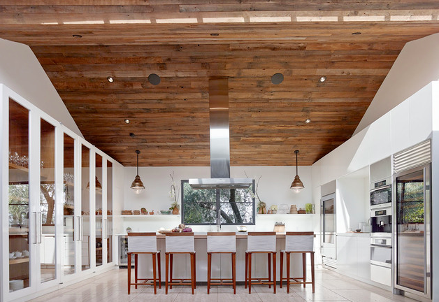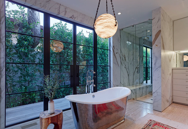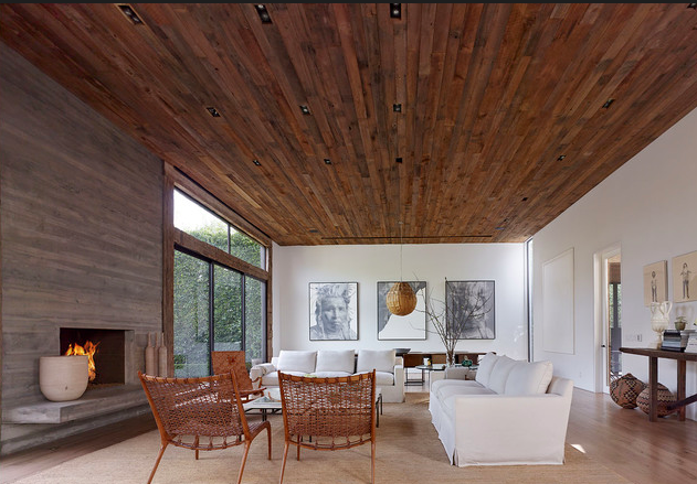 Once spotlighted on Architectural Digest, the 7,119-square-foot residence features a rustic, modern barn design: a mixture of glass and wood, with touches of marble and travertine.