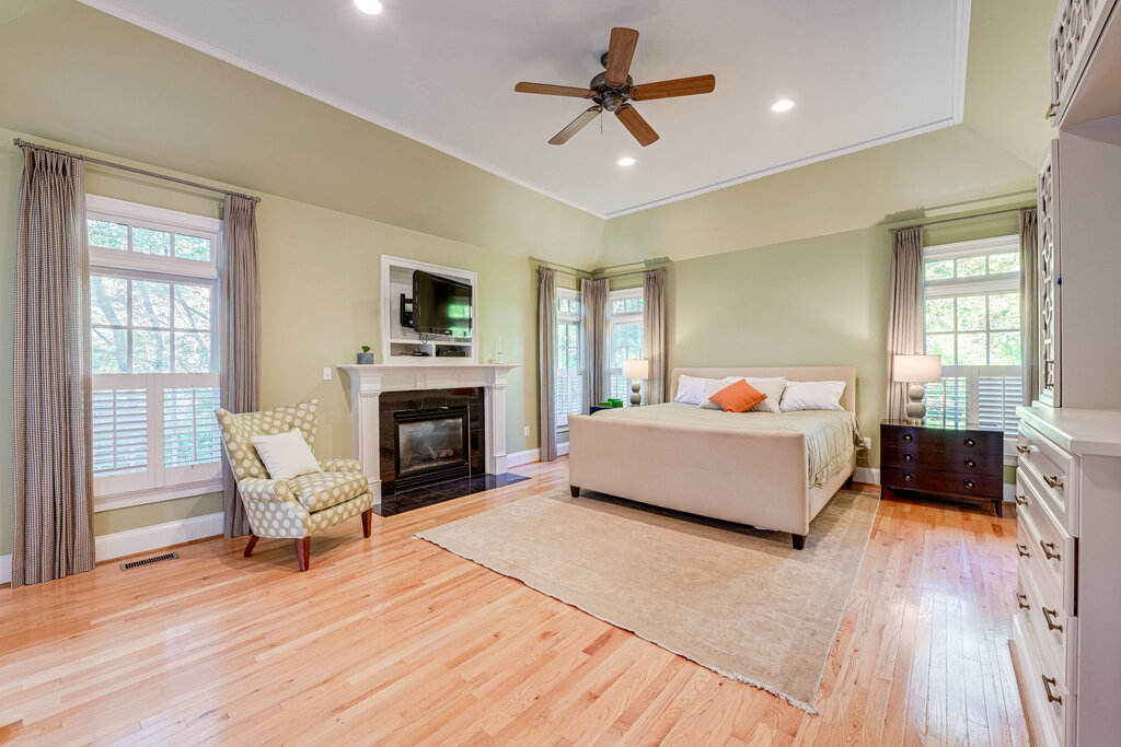 Location, location, location! This beautiful, brick-front Colonial home, built in 2002, is on one of the finest streets in all of Mclean, less than a mile from the Beltway, and is set on .7 amazingly private acres. As you drive through the gate, you realize the comforts of privacy, while remaining so close to all the action. The walk up to the front door, you are greeted by extensive landscaping, beautiful trees, and climbing ivy…a truly serene entrance. As you enter, the soaring ceilings and generous sight lines make it truly a grand entrance. The space is flanked by the custom home office, with plenty of space and custom built-in shelves. The main and upper floors have hardwood throughout, which provides cohesion and comfort. The formal dining room floor-to-ceiling window array is exceptional, combining indoor and outdoor spaces. The main level has 2 full bedrooms, including the Primary suite.