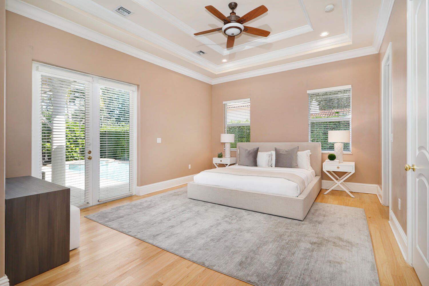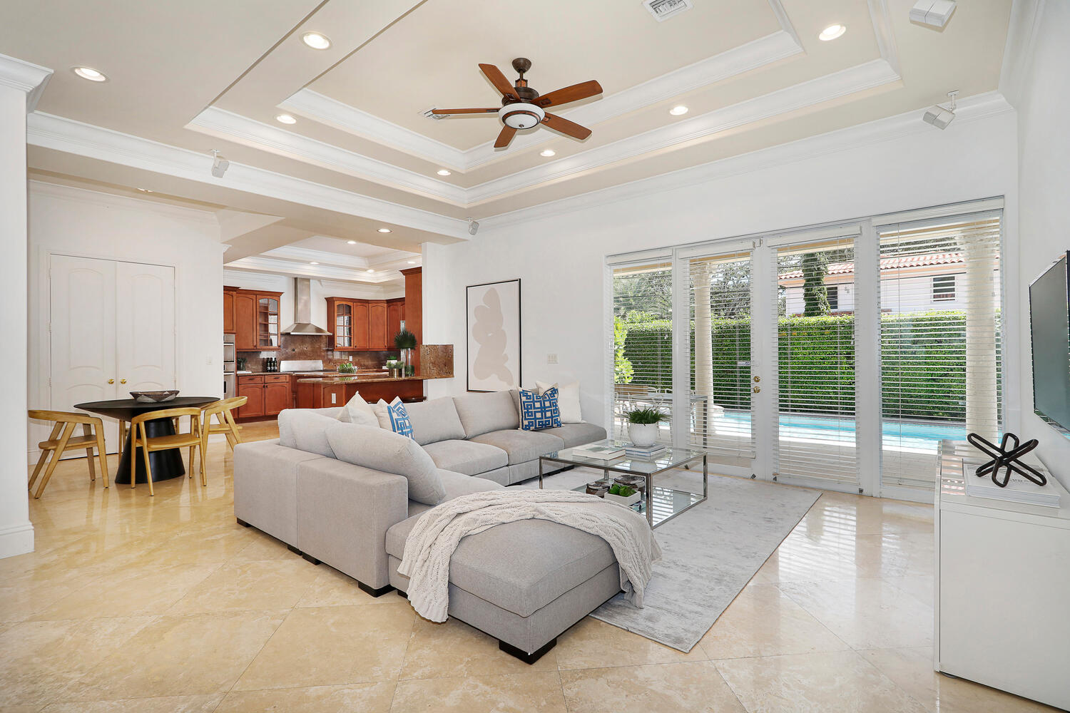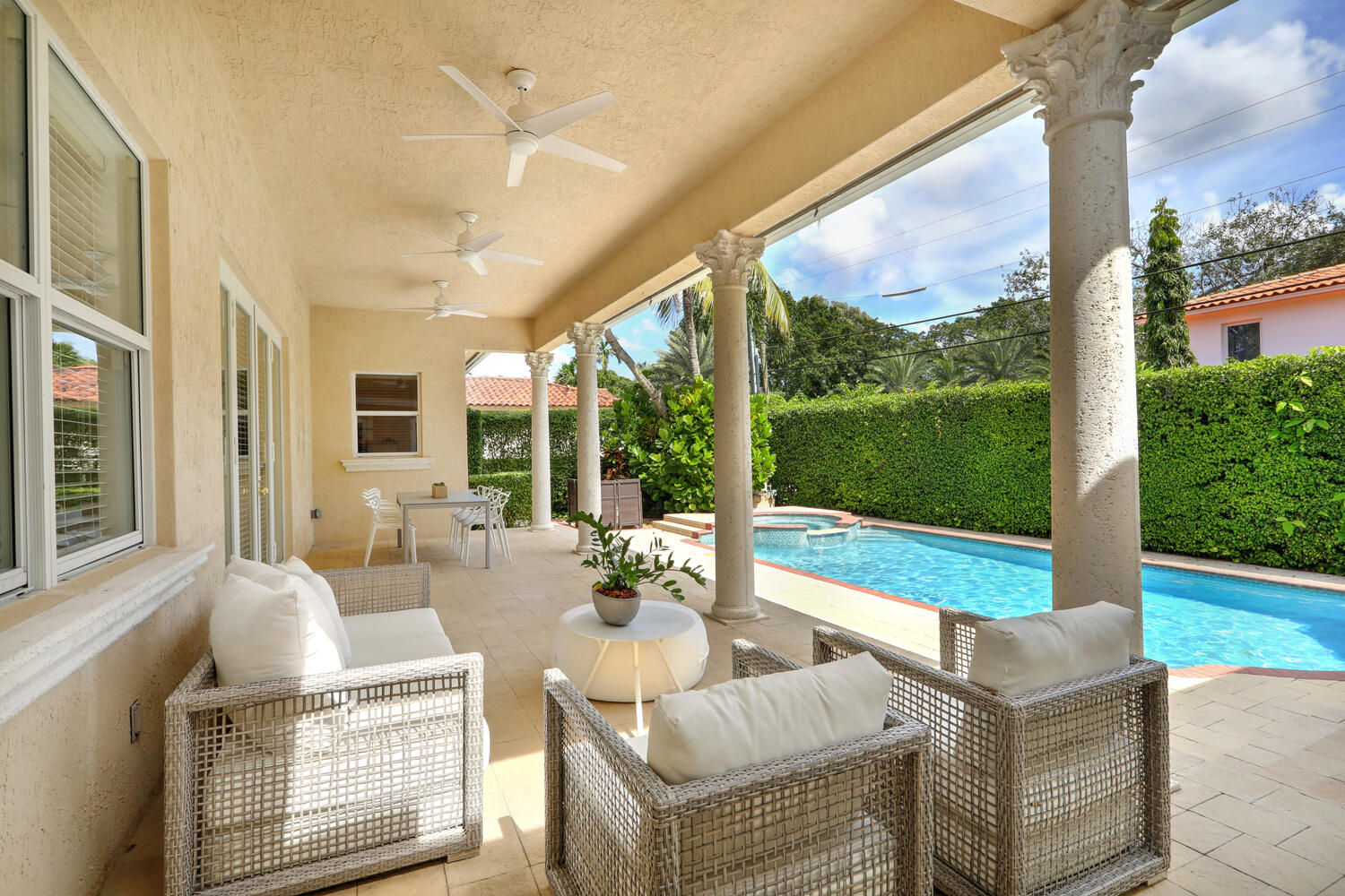 Beautiful and spacious one-story home on a quiet tree-lined street in Coral Gables is perfect for families looking for spacious bedrooms, large open living areas, and high ceilings. Open floor plan with a great room overlooking the pool and patio area, expansive kitchen with gas range, separate laundry room, three well-proportioned bedrooms with generous built-in closets, and a lovely master bedroom overlooking the pool with a fabulous walk-in closet and true master bathroom with double vanities, separate soaker tub, large walk-in shower, and water closet. Outside there is a fabulous covered patio perfect for entertaining, a sparkling pool and spa, one car garage, and a whole house generator. The property is close to downtown Coral Gables, Granada and Biltmore golf courses, and Miami International Airport.