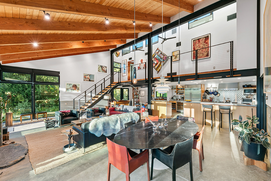 Situated on the same end of the property is a custom-renovated Spartan trailer that offers a unique living experience, complete with a private outdoor bath and lounge area set under the stars, an ideal retreat or artist’s haven. A newly constructed workshop or recording/art studio at the lower edge of the property serves as an additional flexible space for work, storage, or accessory living quarters, enhancing the estate’s versatility. The distance between structures affords a rare level of autonomy with the lower buildings and vintage (1950) trailer able to be accessed through a separate (service) entrance, while still maintaining a strong sense of cohesion through thoughtful design and landscaping. A quiet safe haven, a true compound with state park and miles of mountain biking and hiking trails out your front door. No driving needed. This is Topanga at its most inspired “Paradise Lodge”, a private sanctuary where luxury meets nature and every detail is crafted for elevated, intentional living.