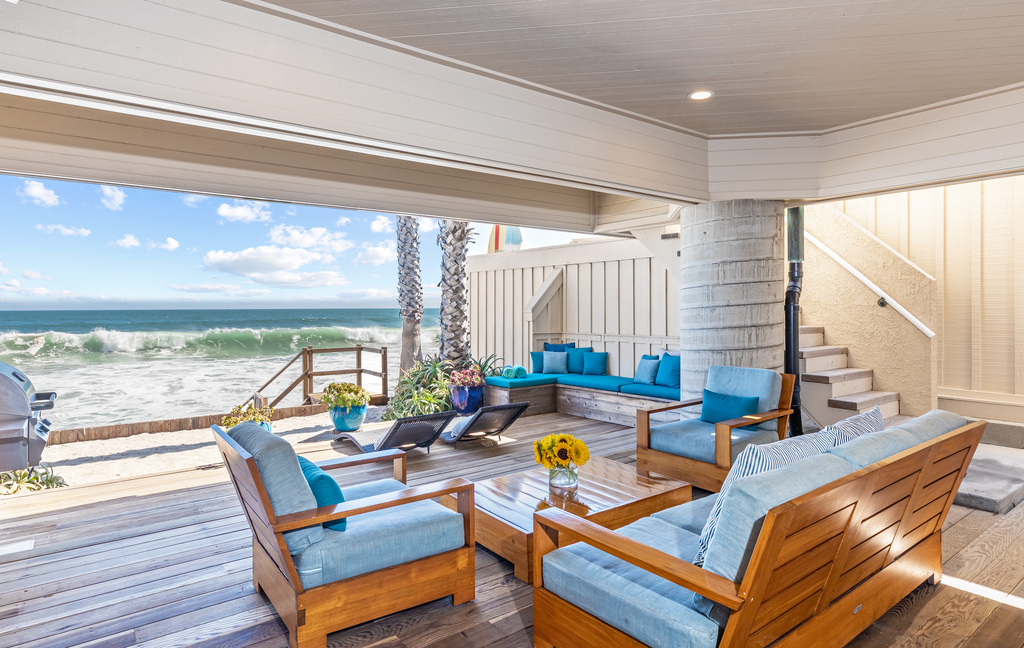 This stunning contemporary beach home features unobstructed whitewater views and access to your very own private sandy cove on the famous Las Flores, “Dog Beach”. Enter the first floor looking out through the floor-to-ceiling, double-height, windows onto the beachfront deck with breathtaking views of the California coastline. The main living area offers an abundance of natural light, opening up to the family room and kitchen, featuring Koa wood cabinetry. On the second level find an open loft/office space with ocean views along with a guest bed and bath. The private, waterfront primary bedroom features a sun-filled deck and a bathroom with a sunken tub overlooking the Pacific Ocean. Offering the ultimate entertainment setup, your own private, section of sand showcases multiple sitting spaces, a wet bar, and an outdoor BBQ all looking out at the magical sunsets of Malibu. Additional amenities include a gym, laundry room, and a 2-car garage. Central location close to the city, as well as the Malibu Pier, Nobu, Soho House, and the Country Mart.