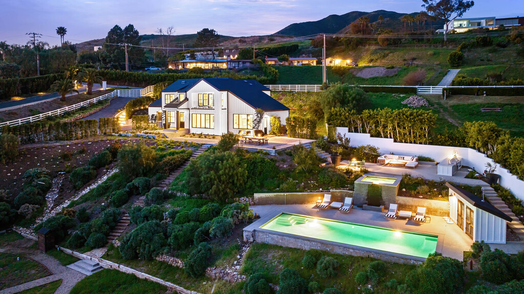 Ever wonder what a world-renowned architect’s personal residence might look like? Wonder no more. Located only a short distance from the east gate of “Cavalleri Estates” on the desirable south side of the street, perched atop a gently sloping 2+ acres, all usable and accessible, rests this newly constructed, fully fenced and gated, private ocean view estate by Tobias Architecture. Whether enjoying a dramatic sunrise or sunset from your primary deck, getting exercise walking the extensive pathways and road system serpentining the property, or taking a swim in the sun-drenched pool and spa, this Architectural Farmhouse is an entertainer’s dream. The stunning “live-in” kitchen has Italian slab countertops, twin 36″ Sub-Zero fridge and freezer, two Miele dishwashers, 6 6-burner Wolf range with double ovens, a Scotsman ice maker, and Waterworks fixtures. At 5524 sq. ft. with expansive windows and ocean views from most rooms, encompassing 4 en-suite bedrooms plus 2 powder rooms, media room and surrounded by outdoor terraces including poolside kitchen area, Sonos Sound system throughout, ample guest parking are just some of the features this Malibu dream home has to offer!