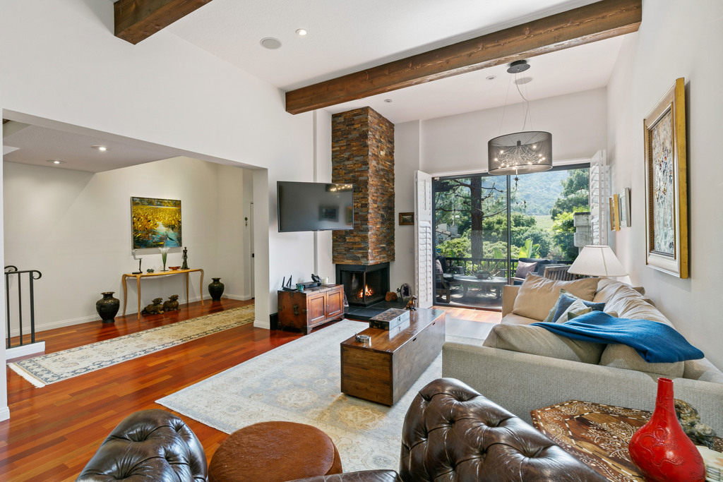 Nestled in the serene enclave of Palisades Highlands, this exquisite contemporary Mediterranean townhouse offers a harmonious blend of luxury, comfort, and breathtaking natural beauty. Perched majestically atop a hillside, this three-level residence boasts panoramic mountain vistas, inviting you to indulge in the tranquil allure of the surrounding landscape. The living area is a haven of relaxation, featuring a cozy fireplace where you can unwind after a day of adventure. Adjacent to the living space, the gourmet kitchen awaits the culinary enthusiast, outfitted with stainless steel appliances and a spacious island perfect for casual dining or entertaining guests.