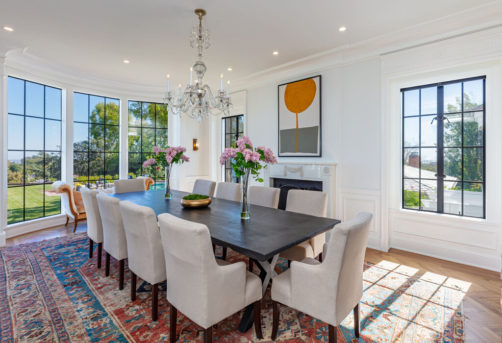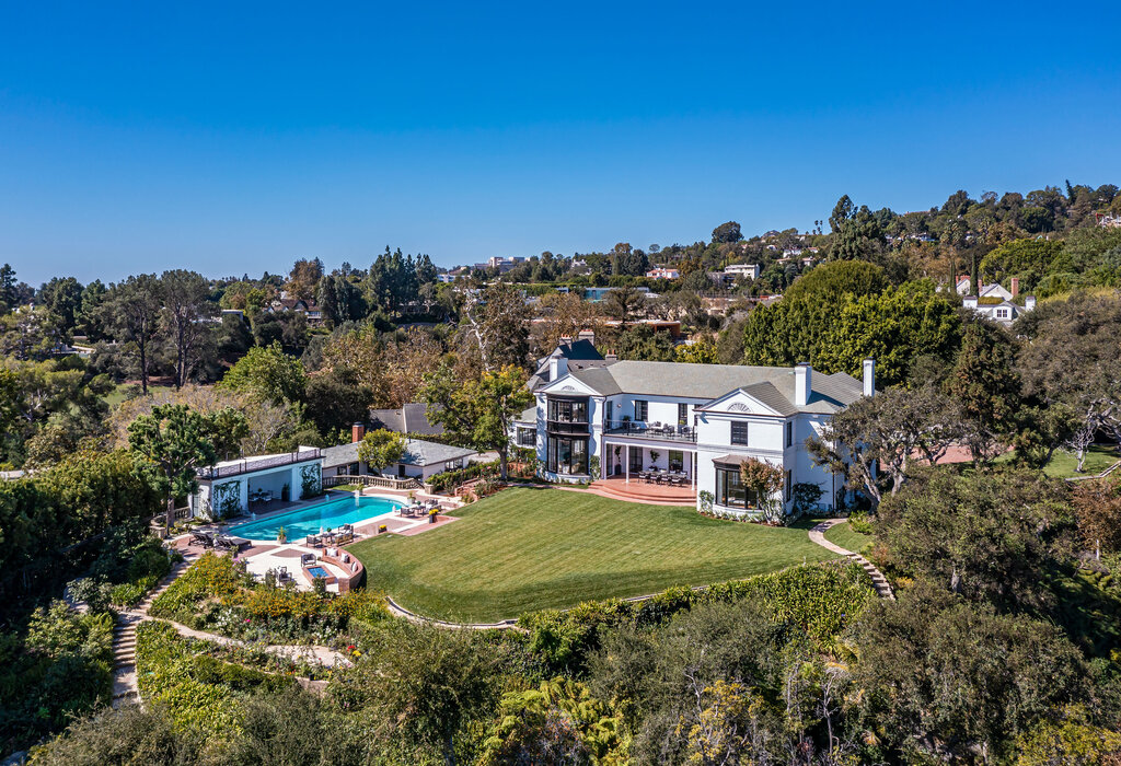 Bel Air traditional gem, originally designed by William J. Gage and Harry G. Koerner, this iconic estate has gone through a meticulous and sophisticated restoration and transformation. Set on a promontory between the legendary Bel-Air Hotel and Bel-Air Country Club, this captivating and elegant residential property in its purest form will disarm even the most ardent traditionalist. Boasting five fireplaces, a primary bedroom retreat, four other bedroom suites, a sumptuous library, office, and study with a wet bar and wine cellar add to the estate’s grandeur. Luxury abounds in the formal living and dining room, breakfast room, and expansive open kitchen with top-of-the-line appliances. An opulent lower level features a game room with bar and seating, a detached two-bedroom guest house with fireplace, two baths, and an oversized pool with pavilion. The main house is set on approximately .88 pristine acres with panoramic city views overlooking some of old Bel Airs finest estates and stretching all the way beyond downtown. Complete with a four-car garage, two laundry facilities, lush landscaping, and an additional parcel of land adjacent to the main house which features mystical and zen Japanese gardens, welcomes all to a bucolic paradise wrapped in approximately 1.06 acres of sheer beauty and gentle calm.