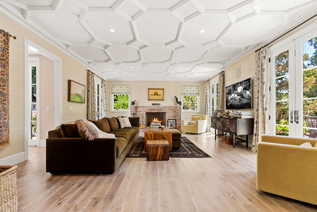 Gated Legendary Traditional Estate on 1/2 flat acre of gorgeous private grounds moments away from Runyon Canyon hiking. One of Hollywood’s most beloved homes has been completely updated to today’s standards yet retains the charm and history originally created. Classic entry hall with beautiful staircase. Large scale elegant living room connects to media family room, both with fireplaces and multiple French doors opening to terraces.