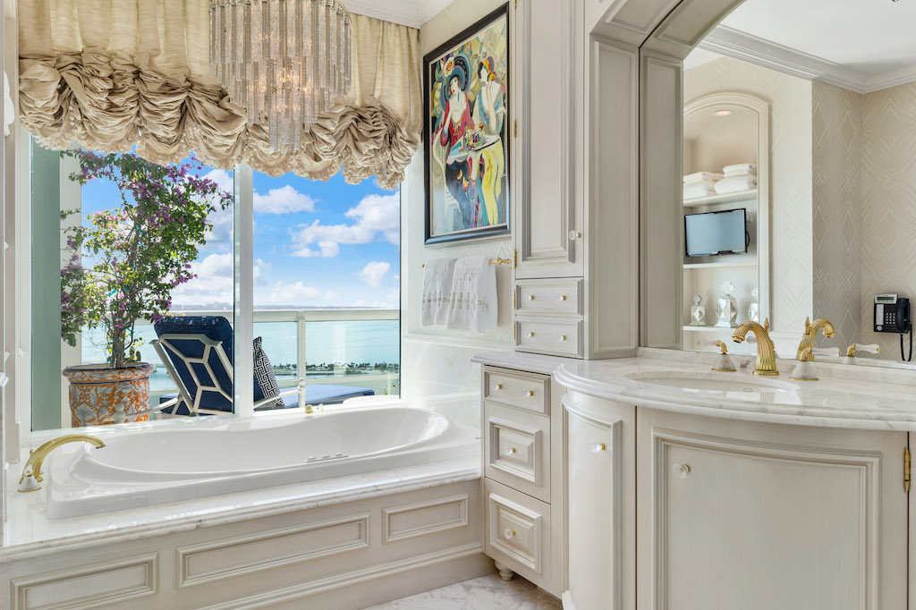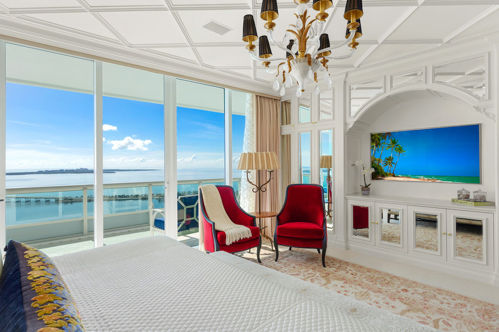 Designed by Carmen Howe | Palm Beach, this magnificent 3-beds and 3.5-baths sky mansion features French limestone floors, 10 ft ceilings adorned by a Chihuly glass chandelier, custom-designed Snaidero kitchen, flawless built-ins, closets, cabinetry, Macintosh surround system and Creston controls. A private elevator leads into this flow-through living space with endless Bay and Ocean views over its expansive terraces. Santa Maria is one of Miami’s iconic luxury residences and it offers its residents a secure, gated, high-class living that is rarely seen in Brickell. World-class amenities including a private marina waits for you!