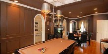 The space features a game room, bar room, six bedrooms, eight baths, guest sites, walk-in closets, fireplaces, gym, spa, playroom and more.