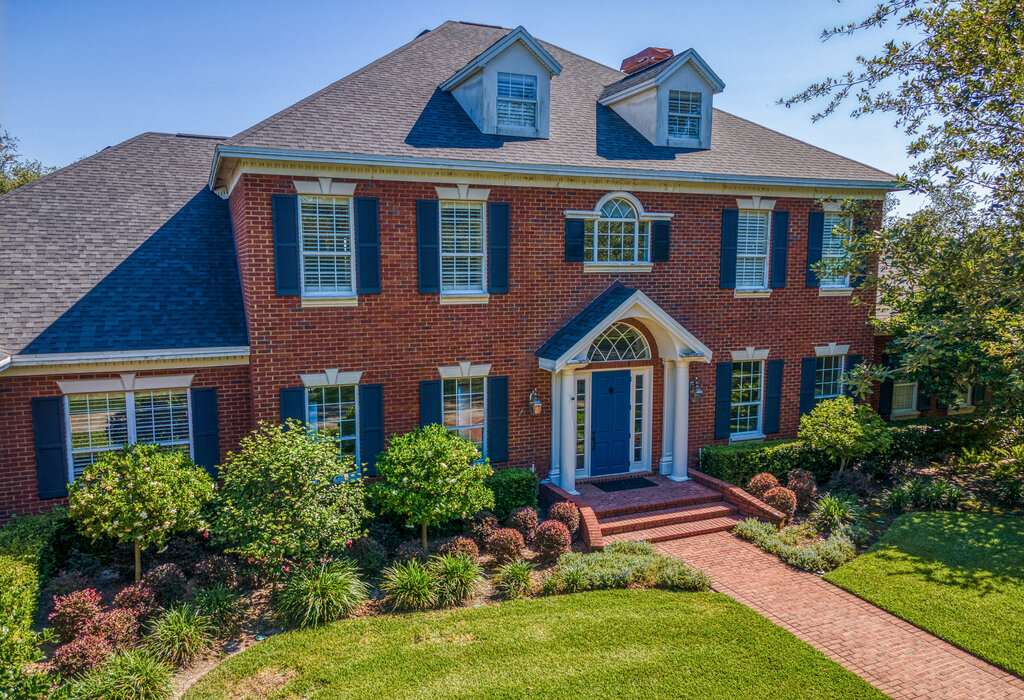 Beautifully renovated, gated lake front estate featuring 4.47 acres on Lake Calm. Have the perfect escape and luxuriant privacy through a private gate, along the tree-lined driveway, to this beautifully appointed custom brick 5 bedroom main home and a separate detached 1 bedroom guesthouse. Enjoy exquisite workmanship and fine finishes throughout, dramatic lake views, stunning hardwood floors, designer lighting, stately built-ins and custom woodwork. Designed for superior entertaining, the light-filled first level includes a formal dining room, den/office, bonus room and a gracious 2-story family room with a fireplace and French doors. A chef’s kitchen features top-of-the-line appliances (Bosch, Wolf & Sub-Zero), 6-burner professional gas range, center island, wine refrigeration, breakfast area and butler’s pantry. Escape to a first floor master retreat with executive closets, a fireplace and sitting area, along with an opulent bath that boasts a soaking tub and indulgent spa-inspired shower. Three bedrooms with luxurious en suite baths are located on the second level, while the third level offers a separate bonus/storage room. The best of Florida living is found outdoors with a pool and spa, expansive covered entertaining area, lakeside firepit, large covered boat dock, covered gazebo and a marvelous shaded playground. A totally renovated farmhouse-inspired guesthouse will delight visitors with an inviting kitchenette, great room, 1 bedroom, 1 bath and additional 6+ car garage /AC storage area. Additional features include Camelot custom cabinetry, Electrolux washer & dryer, new roofs, new HVAC and water heaters, upgraded plumbing fixtures, home generator, clerestory windows and impressive staircase, a 3-car side-entry garage in the main home, plantation shutters and custom window treatments, central vacuum and more on professionally landscaped grounds. Immerse yourself in lake life with abundant outdoor recreation and plenty of space to relax, explore and entertain.