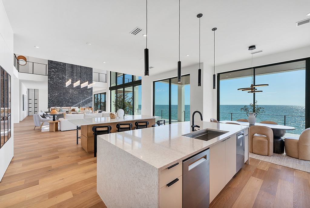 Welcome to one of the few Brand-New Gulf Front Homes available on Florida’s West Central Coast. A rare and extraordinary offering, where cutting-edge design meets endless sea-to-sky vistas. Nestled on the exclusive barrier island of Casey Key, this newly constructed Modern Coastal estate by Modesta Homes defines luxury beachfront living. Positioned directly on the sand with unobstructed Gulf views, this striking residence offers 7,977 square feet of elevated, FEMA-compliant living space, showcasing the pinnacle of craftsmanship and architectural innovation. Built to the highest standards with concrete block construction, pilings, impact-rated windows and doors, and a four-stop elevator, every detail of this home has been thoughtfully curated for style, function, and resilience. Inside, soaring 24-foot ceilings welcome you into the grand foyer and great room, anchored by a dramatic floating staircase and a 24-foot feature fireplace wall.