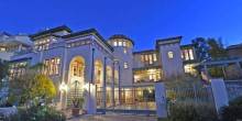 The residence also offers a four-car garage, exotic marble bathroom, fountains, stained glass featuring the Lakers logo, gated driveway, home bar and Mediterranean-style design features.