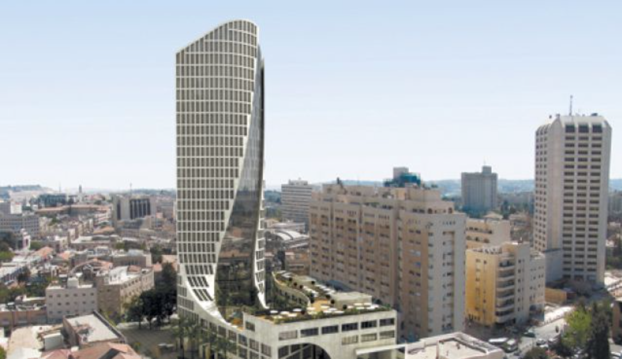 As Jerusalem’s second tallest sky rise (105 meters, just below the Holyland Tower 1), an observatory seems appropriate for the modern 26-story building, whose initial renderings boasted a tapered, glass-swirled façade dubbed the “Eden Project.” But this redesigned, heart-of-the-city pyramid isn’t merely designed for views—it is to be viewed itself from a distance as part of the city’s emerging, taller skyline.