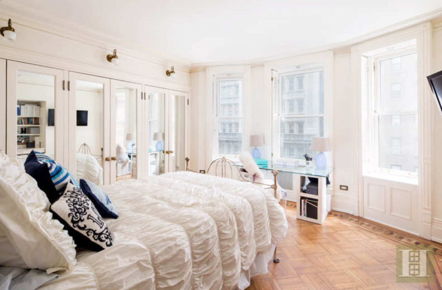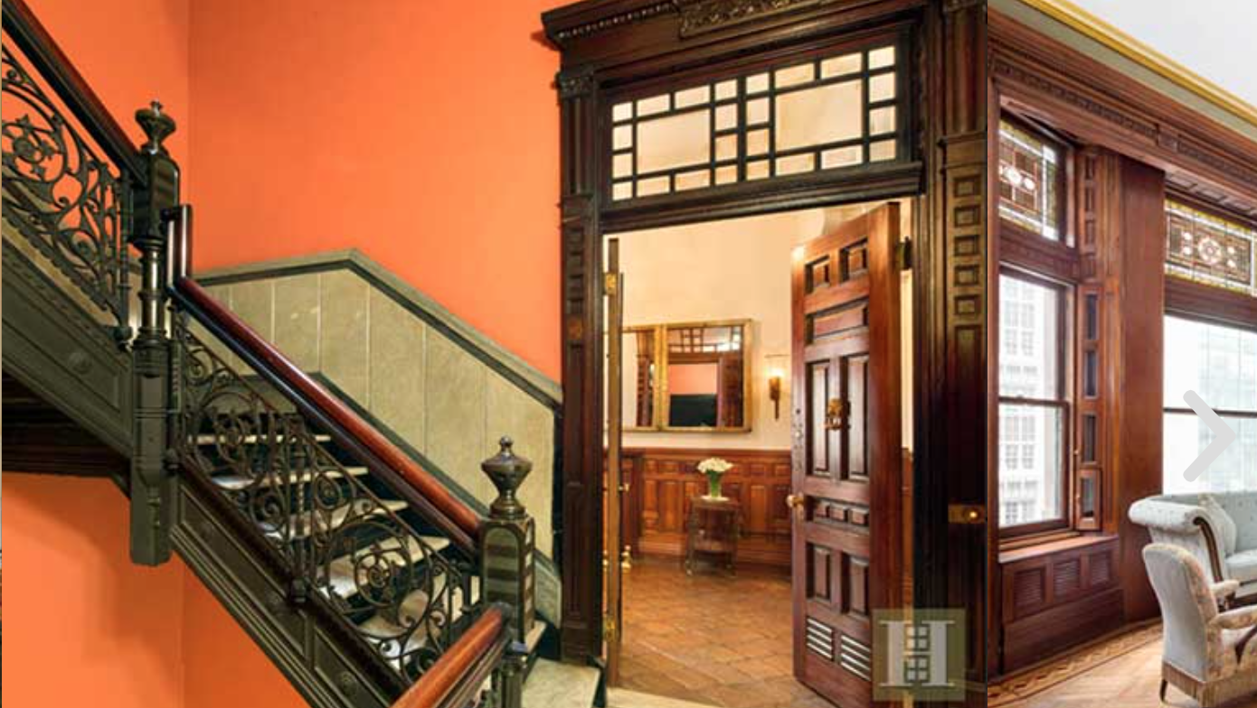 The 3,200-square-foot, nine-room duplex retains much of the same appeal it did when West Wide Story maestro Bernstein owned it: a narrow parlor, carved mahogany pocket doors, 1885 Parquet de Versailles floors, an ornate wrought-iron staircase, bay windows with original Tiffany transoms, and even a grand piano in one of its grand rooms.