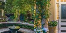 Outside, a slab-stone courtyard, pretty gardens, in-ground pool and fountain make the space feel like a little slice of heaven.
