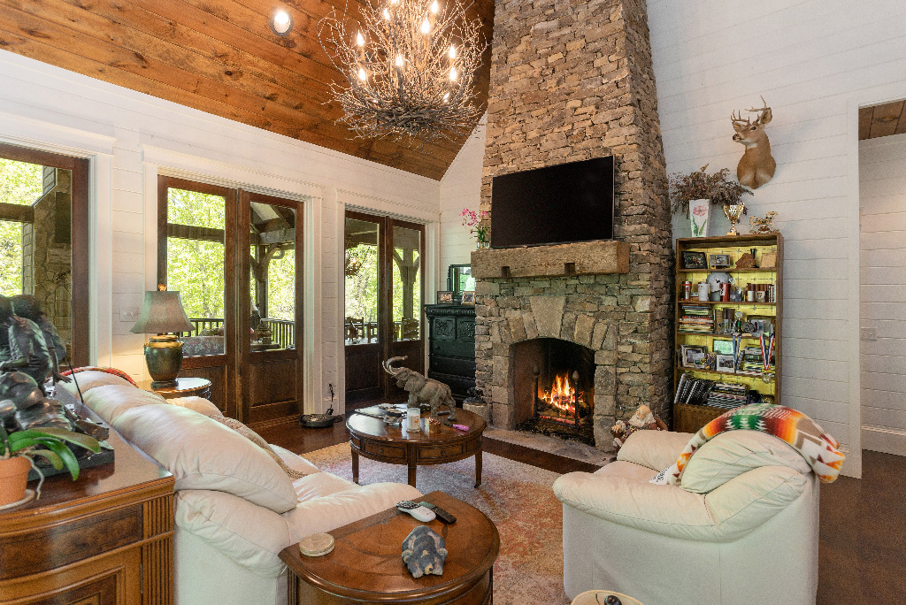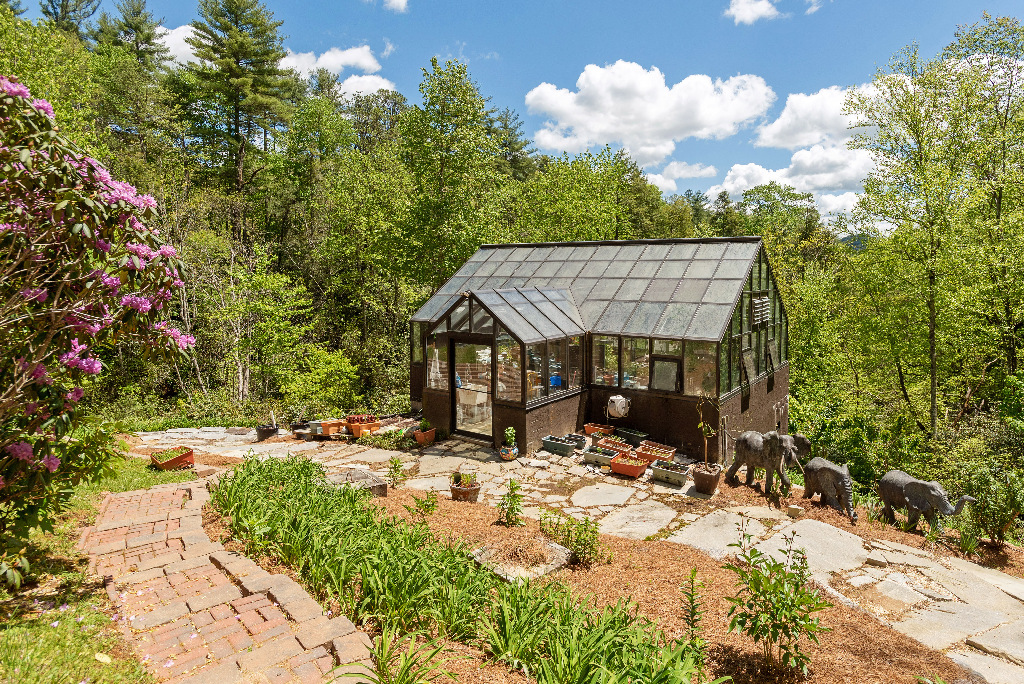 Welcome to Enchanted Falls Farm, a 3.39+/- acre private estate located within the scenic Smoky Mountains on the Horsepasture River. This beautiful mountain estate is perfectly situated to take advantage of the picturesque Burlingame Creek and its many waterfalls. The well-stocked creek offers anglers many opportunities to fish with the spectacular falls as a backdrop. Relax on the screened porch featuring a cozy wood-burning fireplace and listen to the waterfalls. The main house boasts three bedrooms, three and a half baths, reclaimed timbers, shiplap-covered walls, and wide plank wood floors. The primary bedroom suite is on the main level, complete with a stone fireplace and gas logs. Also on the main level, a chef’s kitchen offers a gas range and a breakfast bar. The living room features a soaring stone fireplace with gas logs and a wine niche for convenient storage. The house features two guest suites on the upper level and a large bonus room over the garage, making it ideal for entertaining friends and family. Adjacent to the house, a 20-by-30-foot commercial greenhouse boasts heated floors, fans, and automatic windows which are temperature-controlled, as well as an LED infrared lighting system. Below the greenhouse is a bunker complete with turrets. Meander through the property’s trails in search of waterfalls or sit at the fire pit and have s’mores or on the screen porch, listening to the soft sounds of the river. The property is gated and has a generator.