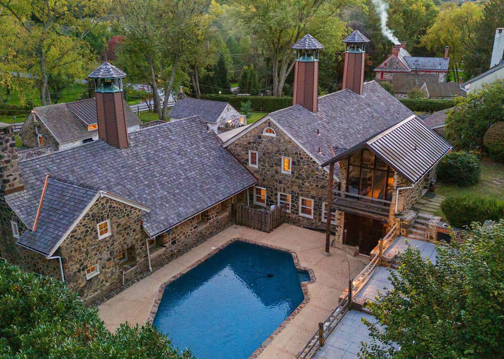Above the barn, there is a huge storage space with a full bathroom. There is potential to renovate this space to create an artist-style loft. Walk across the wood bridge to the secluded, refinished resort-style pool with a built-in kitchen and outdoor shower. The pool deck sits on an elevated flagstone patio wrapped by gorgeous natural stone walls – perfect for hosting events and family gatherings. The property also includes a large office space adjacent to the barn with a guest house or in-law suite above. The guest house offers a versatile living space with a full kitchenette, living room, and bedroom. There are also two lovely updated one-bedroom guest cottages. Additional features include a new HVAC, a newer roof, natural gas for cooking and heating, and a public sewer. The total square footage of all dwellings is between 11,000 and 14,000 sqft. The property seamlessly combines old-world charm with modern amenities just minutes from Episcopal Academy, White Manor Country Club, and Downtown Wayn. Experience the essence of horse country along the prestigious Main Line. Your luxury lifestyle awaits – schedule your private viewing today!