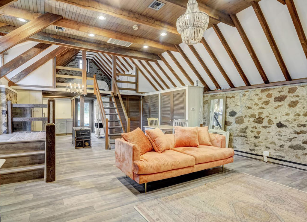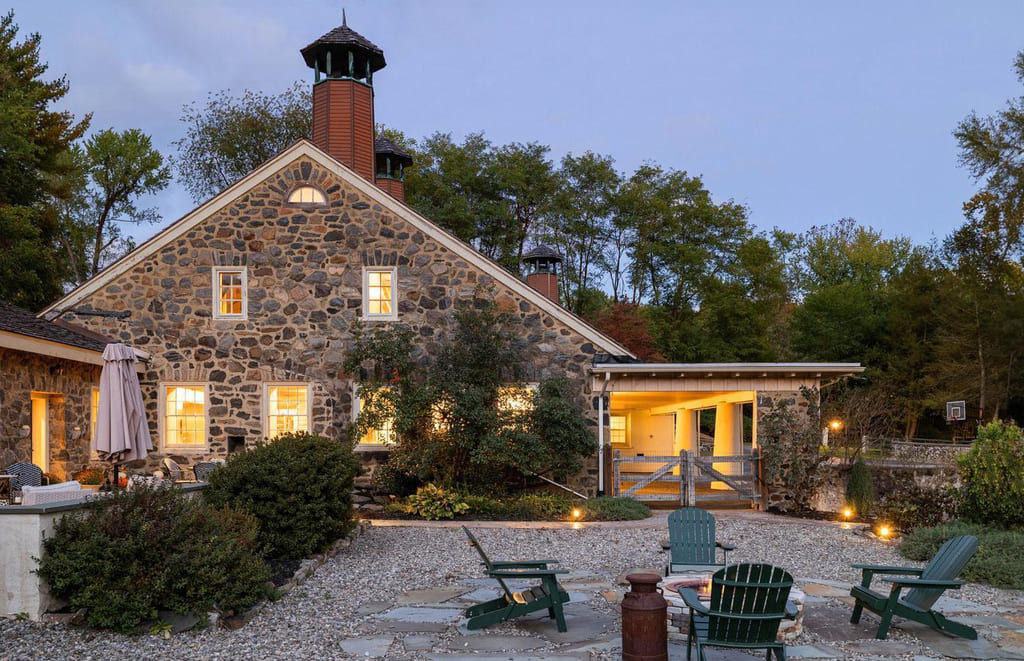 Discover a historic gem in the coveted Radnor Hunt neighborhood. A family compound property, formerly Echo Valley Farm, is part of the prestigious William Lewis Farmstead. This unique property has graced the Episcopal Academy House Tour, showcasing the best of the Main Line. This enchanting property sits on 1.83 picturesque acres. Housed in the original Granary, the gated entrance to the main residence features a sun-drenched garden patio, a gourmet kitchen with a secondary butler’s kitchen, luxury stainless appliances, refinished soapstone counters, fresh paint, and original hardwood floors, leading to a captivating living room with exposed beams. The first-floor master suite features vaulted ceilings and a marble bathroom with a jacuzzi tub. The second and third levels are a blank slate for the new owner to customize their perfect floorplan with a natural stone wood-burning fireplace, large windows, a full bathroom, and space for 2-3 bedrooms. The renovated barn has been converted into a majestic English-style pub and gaming area.