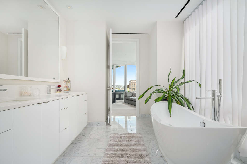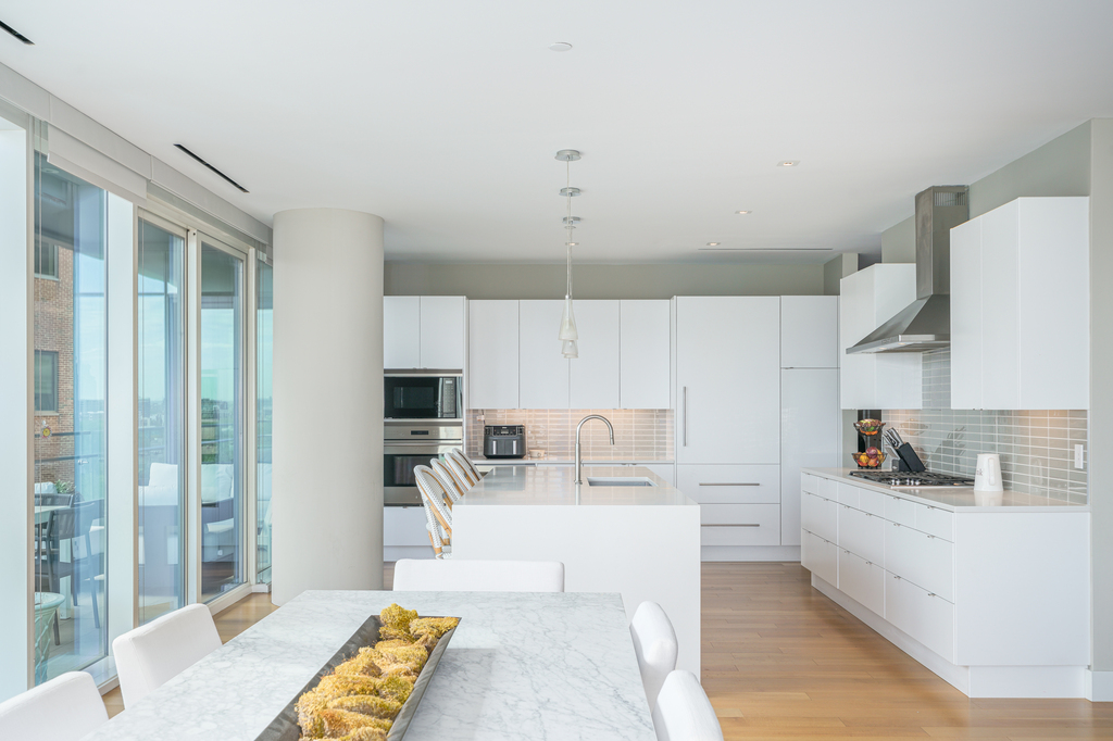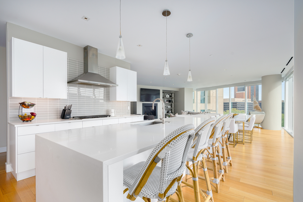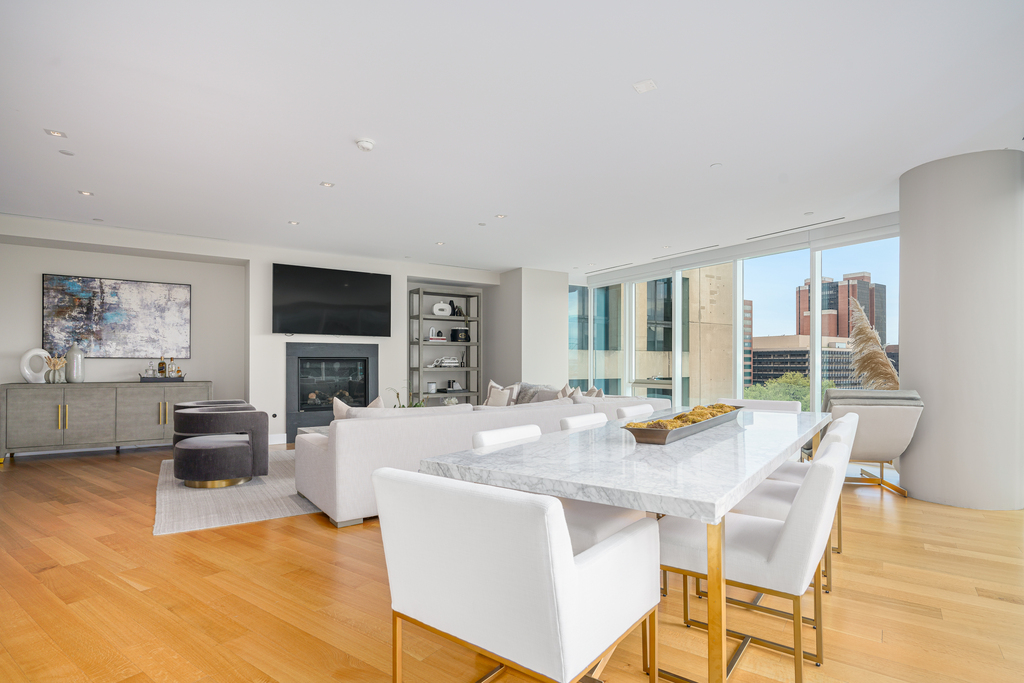 Welcome to your private oasis at Philadelphia’s most prestigious address, 500 Walnut. This residence sets a new standard for ultra-luxury living, boasting breathtaking panoramas and amenities that surpass even the highest expectations. With each floor featuring only 1-2 residences and accessed by non-stop elevators, your privacy is always maintained. Step into 3200 square feet of pure luxury and elegance, featuring 3 bedrooms plus a den and 3.5 baths. The floor-to-ceiling windows offer seamless views of iconic landmarks such as Independence Hall, Washington Square Park, and the Delaware River. The custom Joanne Hudson ultra-modern bright white kitchen is a chef’s dream, complete with an oversized quartz island and waterfalls, gas range, and wine fridge. The living room is bathed in natural light and features a vented fireplace, perfect for creating a luxurious, peaceful space to call home. The marble-lined baths add a touch of opulence, while the primary suite boasts a spacious walk-in closet that could easily serve as another room.