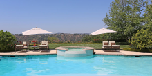 The home has excellent features like a great room, home theater, expansive wine room, gorgeous crystal chandeliers and top-of-the-line appliances, library, luxurious guest house and a four-car garage for all of your loveliest luxury cars.