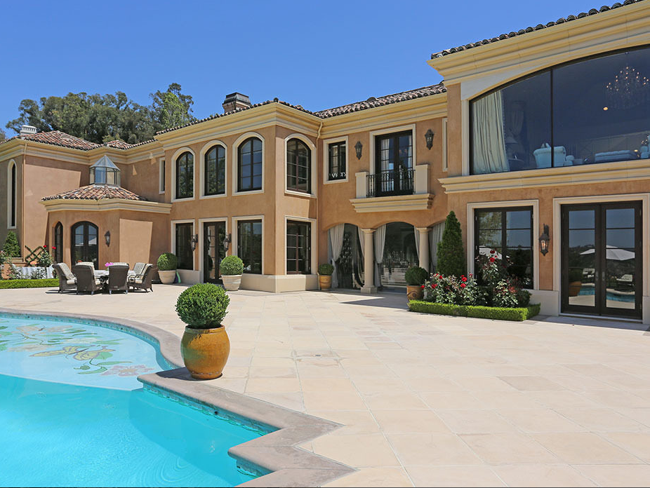 The gorgeous home also has a beautiful pool and finely manicured grounds.