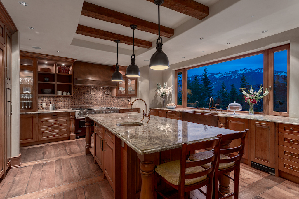 Stone and timber bring the heart of the West Coast alive in this luxurious mountain estate. Nestled in the exclusive Stonebridge neighborhood, this secluded gated residence sits on 4.3 acres of manicured alpine gardens and offers dramatic panoramic views that span an entire mountain range including the iconic Whistler and Blackcomb mountains. At the heart of the home, a spacious kitchen and family area create a warm and inviting space, with more formal entertaining being offered in the grand room boasting vaulted ceilings and floor-to-ceiling windows. Dine alfresco in the outdoor living area then submerge yourself in the cantilevered hot tub with a glass of wine from the private cellar and soak in the alpenglow. Secluded, yet close to the world-class amenities of Whistler, this estate welcomes the awe-inspiring mountains to the doorstep and provides everything needed to live in comfort without leaving the grounds – a true luxury retreat.