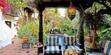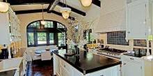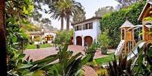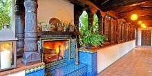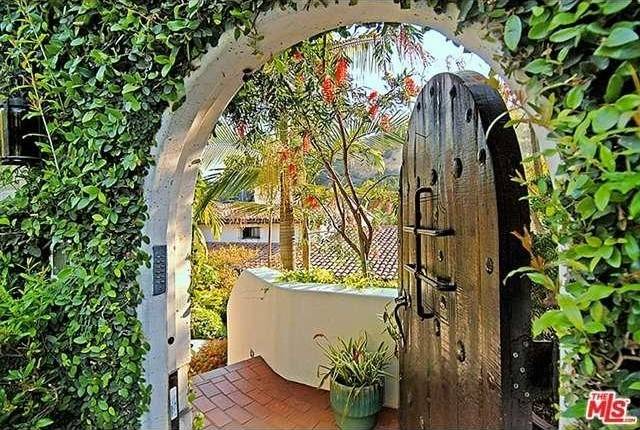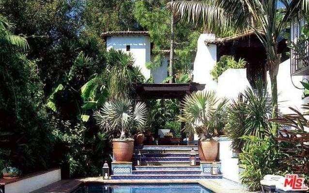 It’s no surprise this stunning estate has had so many celebrity owners—the 1929 Spanish-style villa exudes luxury and seclusion. The six-bedroom, six-bathroom home features charming details like Spanish tiles on its outdoor stairs, fountain, and fireplace, as well as dark wood-beamed ceilings throughout. In addition to a wood-paneled home theater, the home has an expansive outdoor area with a dark wood pergola and lush tropical landscape.