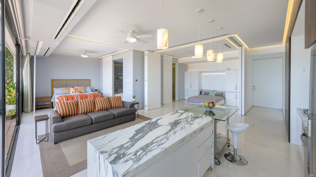 Welcome to Unit 506 at Pier 57! This modern/contemporary 5th-floor unit boasts a spacious open floor plan with stunning city and ocean vistas. Comprising 2 bedrooms with flexible, movable walls, this residence offers the option to customize the space according to your preferences, ensuring optimal privacy or an open layout. The interior is adorned with elegant large marble floor tiles, high-end fixtures, and a delightful terrace that provides sweeping views of the surroundings. Situated in the heart of the Romantic Zone, Pier 57 is conveniently located less than two blocks from the Pier and Los Muertos Beach. The development showcases a sprawling rooftop infinity pool that offers mesmerizing views, a fully stocked bar, a gym with equally impressive vistas, and round-the-clock security services. Whether you seek a primary residence, a vacation getaway, or an excellent rental investment property, this unit presents a fantastic opportunity to enjoy the vibrant lifestyle of this sought-after location.