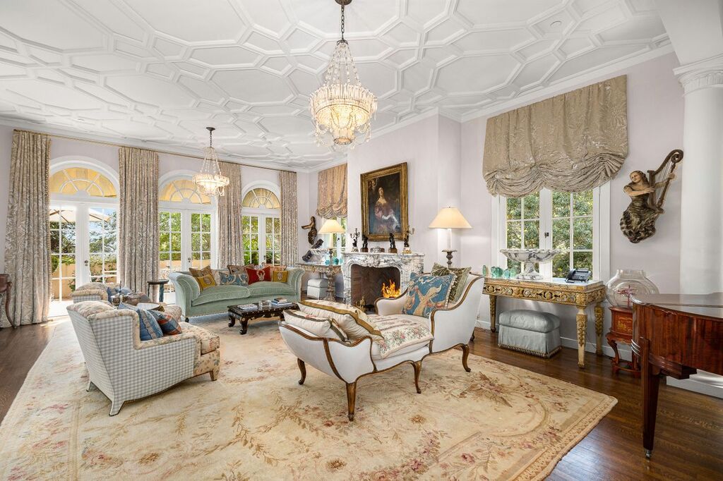 Each of the parquet floor patterns was custom-built on-site with hand-cut French Oak, imported from historic Chateaus. A curated collection of Dutch, Italian, and Spanish antique tiles are attentively integrated throughout the estate’s interior and exterior. The elegance of the villa’s architecture, facade, and finishes are enhanced by the estate’s unparalleled and completely updated infrastructure including a structural and mechanical engineering overhaul with added subterranean levels and state-of-the-art systems rivaling modern hotel resorts of today. And finally, The Far Afield Gardens, which include the original Bridal Path connecting horticultural, botanical, native, and formal parterre gardens across acres of fertile land. Also featuring the historic statuary of Rose Farwell “The Lady” and Dionysus & The Historic Folly. Stroll the beautiful winding paths connecting all the incredible natural orchards and groves such as The Citrus and Stone Fruit Orchards.