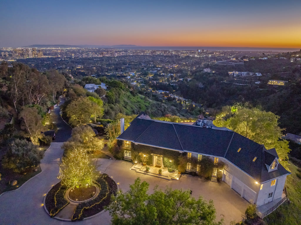 This sizable Beverly Hills compound is discreetly situated on nearly 8 acres behind secure gates and a long, private driveway. Immaculate, lush landscaping complements the estate’s impressive acreage which also encompasses a tennis court and grand motor court—all just minutes away from Rodeo Drive.
