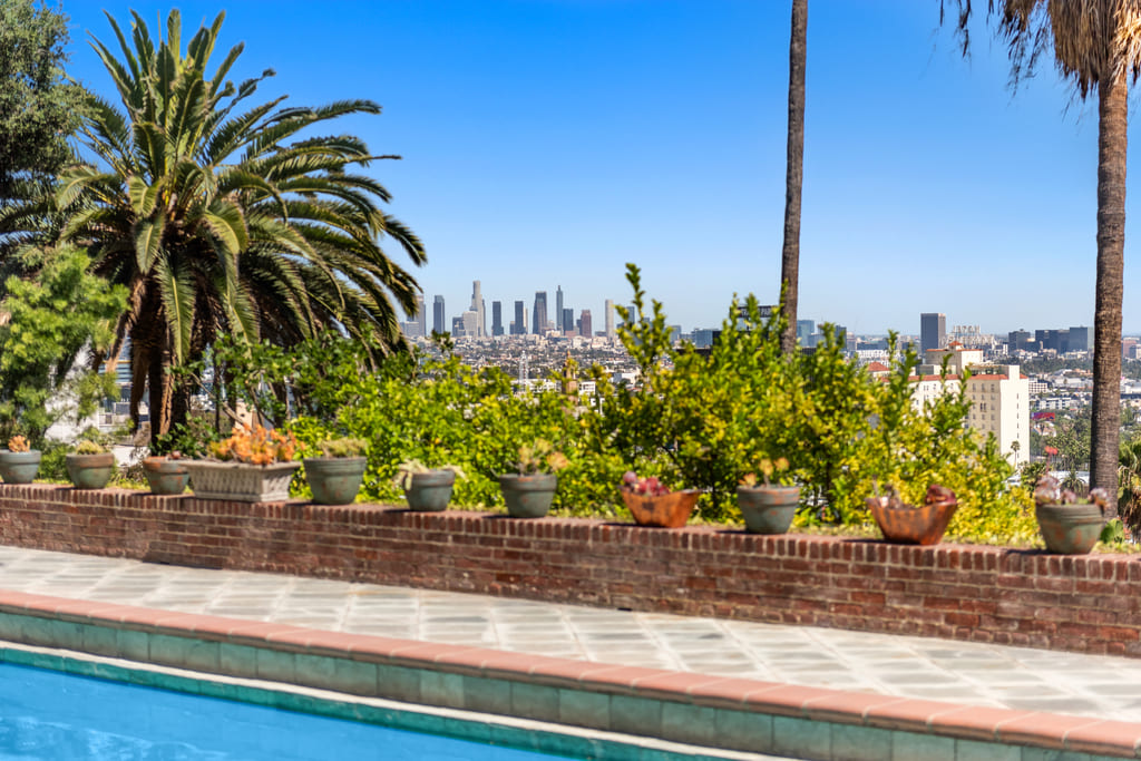 A residence of exquisite style and exceptional privacy, this remarkable compound sits at the top of a winding drive on approx. 6.5 acres of gorgeous landscaping, mature trees, and Hollywood sophistication. The gated enclave is both a private sanctuary and a distinguished setting for lavish entertaining. Just four previous owners: Dustin Farnum, star of DeMille’s “Squaw Man”; Mark Hellinger, writer/producer whose short story gave rise to Bogart/Cagney film “The Roaring Twenties”; Gail Patrick, executive producer of Perry Mason series and one of the first and most successful female producers in Hollywood; and director Taylor Hackford. Fabulous residence combines tranquility, privacy, and convenience. The spacious, elegant main residence has a swimming pool, a wide terrace for lounging, dining, and entertaining. Separate 3-bedroom guest house plus a 5-car garage with office and apartment above. Refined and comfortable, with gorgeous city lights views, manicured gardens, and beautifully detailed interiors.
