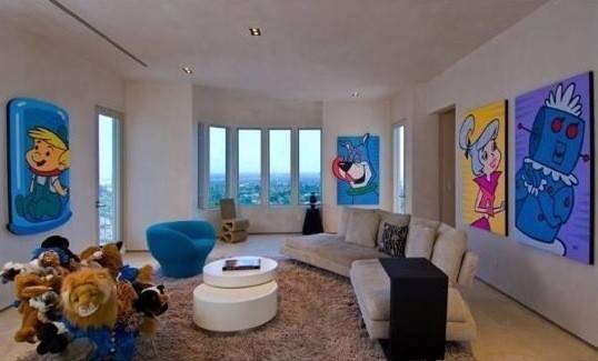 When the home was previously listed, Luxist noted that there is a large dressing room, large windows to showcase the views, a whole room featuring multi-colored Jetsons art, a room with a full-sized Buzz Lightyear, three Campbell soup can pictures above a vintage Louis Vuitton trunk, and more.