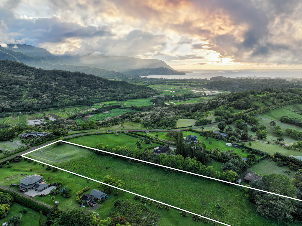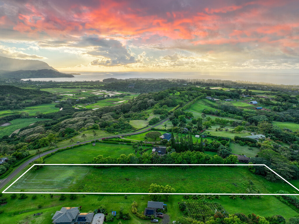 This exceptional property on Kaua’i’s north shore spans 3.75 acres, offering breathtaking mountain and sunset views. Situated on the highly sought-after Kapaka Street, this level “blank canvas” is perfect for creating your dream private estate. Enjoy the best of rural living with all the conveniences of Princeville Center just minutes away, including dining, shopping, yoga, medical services, a post office, banks, and a library. Nearby, you’ll find world-class golfing and the charming town of Hanalei, with its miles of sandy beaches and renowned surf spots. A short drive takes you to the Na Pali Coast Trail at Ke’e Beach, where your adventure begins. For more dining and shopping options, visit the Kilauea Lighthouse Center, just 10 minutes east, set amidst historic stone buildings from the sugar plantation era. Anini Beach, ideal for snorkeling, swimming, windsurfing, and picnicking, is also about a 10-minute drive away. This property offers unparalleled location, location, location!