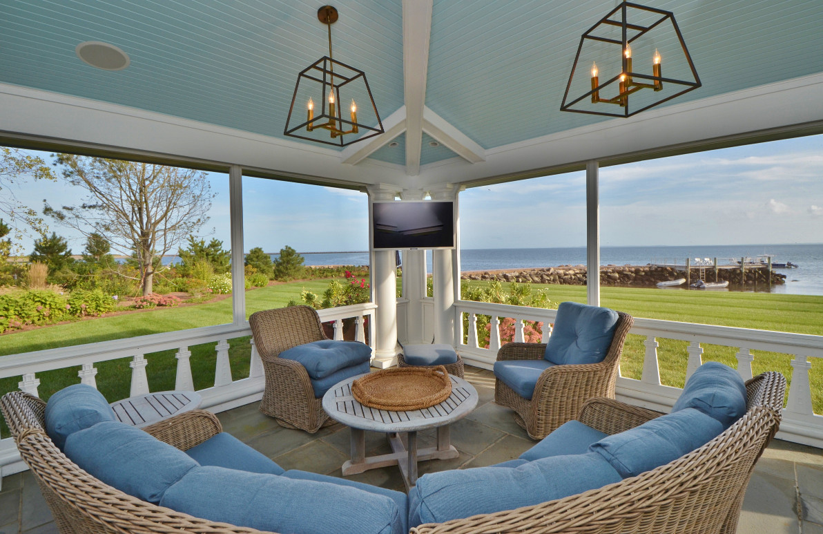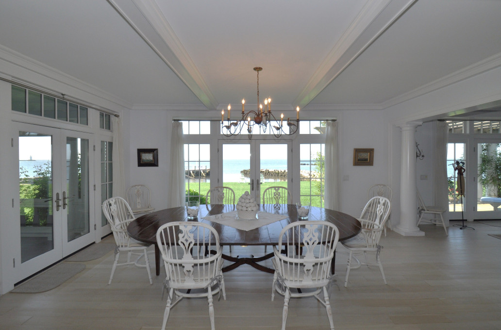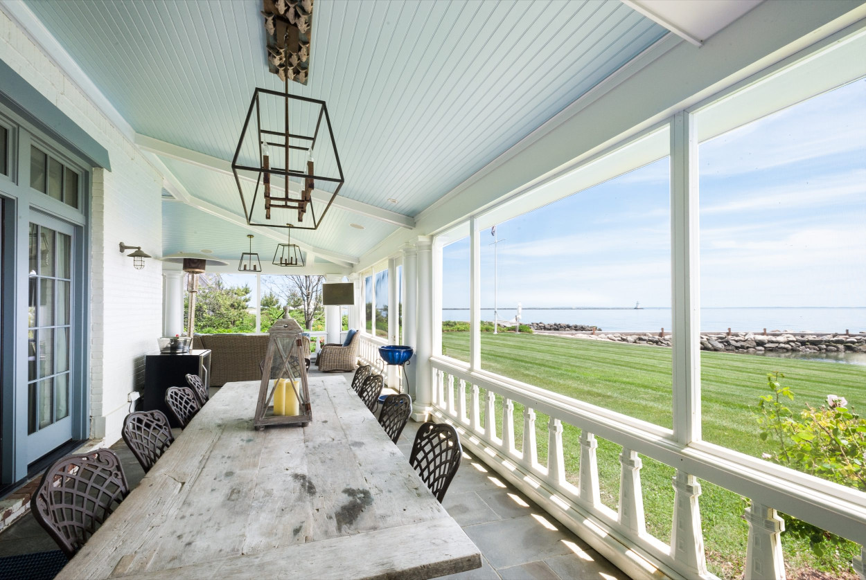 Overlooking the Long Island Sound in Old Saybrook, the first residence is a 8,400-square-foot, three-story home on 1.5 acres, with a private dock on 220 feet of Long Island Sound frontage.